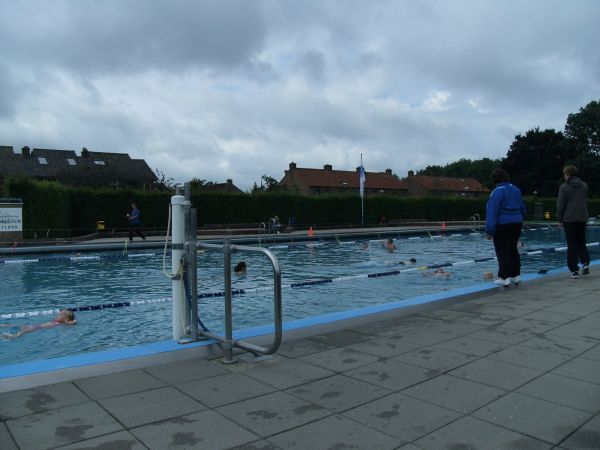 Geplaatst op:17-07-2012 Bijgewerkt op:18-07-2012 08:55 Geen storm of regen houdt de stoere zwemmers in het Knopenbad tegen.Bron: Nettie Kuijer, redactie Radio Stad MontfoortIedere werkdag wordt er trouw gezwommen in het Knopenbad in Montfoort. Nadat de “Vroege Vogels” hun banen hebben getrokken, komen Bep, Elly, Maria, Willem, Dirk, en vele anderen zwemmen. In de banen langszij krijgen kinderen vanaf 5 jaar zwemles. “Armen, benen, lang.” Maar in het midden zwemmen de volwassenen, waaronder bijvoorbeeld Bep uit Woerden. Al jaren zwemt de stoere 87-jarige haar baantjes, onderbroken door armspieroefeningen bij de startblokken. Tot enkele jaren geleden kwam ze nog op de fiets. Maar sinds ze haar heup brak en met een stok loopt komt ze met de regiotaxi en reist ze terug met de bus. Duidelijk genietend, ondanks dat het weer niet echt meewerkt. Zomer in Montfoort De boten weten Montfoort weer te vinden, de markt biedt nog steeds wekelijks zijn verse waren, de winkeliers hebben de kooltjes en het barbecuevlees al klaarstaan.. Voor de thuisblijvers is het alleen nog even wachten op de zon. En ondertussen kan er dagelijks heerlijk worden gezwommen in het verwarmde bad: http://www.knopenbad.nl
