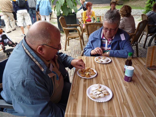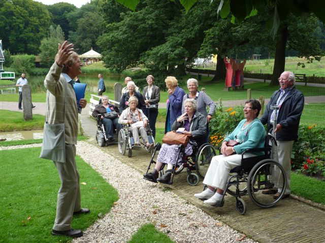 Geplaatst op:02-08-2012 Bijgewerkt op:02-08-2012 12:50 Dagje uit met de SwomBron: Ad VlooswijkDe MuseumPlusBus is een initiatief van twaalf musea. Zij nodigt groepen senioren, die moeilijk of niet in de gelegenheid zijn om zelf een bezoek te regelen, kosteloos uit om een museum naar keuze te bezoeken.Dinsdag 31 Juli is door SWOM een bezoek aan het Nederlands Openluchtmuseum georganiseerd. 45 gasten en vrijwilligers uit Montfoort vertrokken om 9.00 uur met de prachtige MuseumPlusBus richting Arnhem. Dit museum bestaat 100 jaar. Ter gelegenheid hiervan opende H.M. Koningin Beatrix dit voorjaar een indrukwekkende presentatie van het dagelijks leven in de Jordaan.Na een kopje koffie werd de groep opgesplitst. Er volgde een rondleiding, waarbij men door een gids werd meegenomen op een reis door de tijd van twee eeuwen geleden tot heel recent. Boerderijen uit vroegere tijden, huizen en molens, het boerencafé en de gezellige oude winkeltjes brachten vele weer terug in de tijd.Hierna kon men op eigen gelegenheid lunchen en nog een paar uurtjes, onder uitstekende weersomstandigheden,wandelen of lekker op een terrasje genieten van dit prachtige park. Rond 17.00 uur arriveerde de bus weer bij “Parkzicht” en keerden de zeer tevreden deelnemers weer huiswaarts.  |  | |