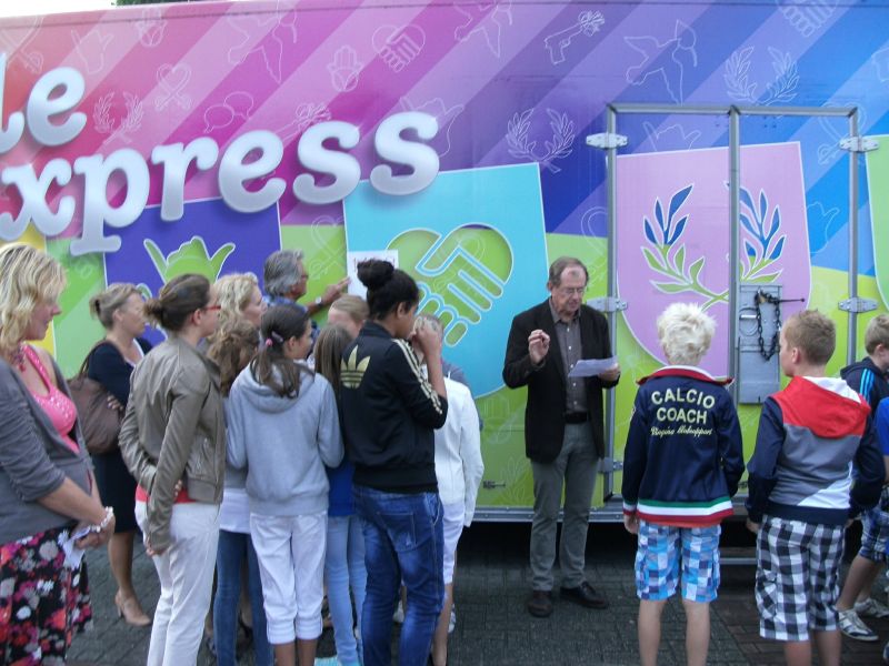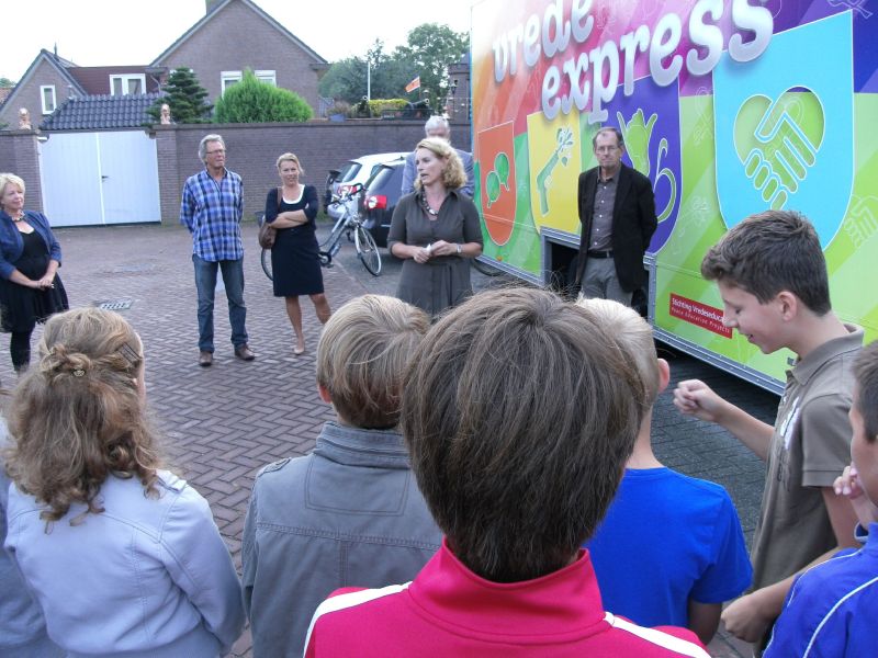 Geplaatst op:10-09-2012 Bijgewerkt op:10-09-2012 13:45 Vrede Express in MontfoortBron: Nettie Kuijer, redactie RSMMaandag 10 september werd de Vrede Express geopend worden door Gedeputeerde Marriet Pennarts en Wethouder Jan Vlaar. De Vrede Express is een mobiele tentoonstelling in een trailer en gaat over Vrede, Democratie en Burgerschap. Het is een interactieve tentoonstelling voor kinderen van 10 tot 14 jaar. De thema’s zijn o.a. anders zijn, vrijheid en democratie, plagen en pesten, conflicten en macht. Maar ook ouders van de leerlingen kunnen de Vrede Express bezoeken. Dan kunnen ze kennis nemen van wat hun kinderen daar mee maken, maar zelf ook wat opsteken. In Montfoort is de Vrede Express voor ouders geopend op dinsdag 11 september as. van 19.00 uur tot 20.30 uur. Standplaats Hofplein.In Linschoten op donderdag 13 september as. ook van 19.00 uur tot 20.30 uur. Standplaats tegenover “De Brede Vaart.” www.vredeseducatie.nl