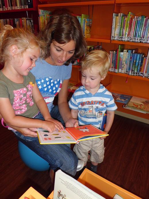 De rondleiding voor de ouders in de bibliotheek was een succes. Het thema van de middag was Boekstart. Dit is een leesbevordering programma voor ouders en baby`s. Ouders die hun baby lid maken van de bibliotheek krijgen een gratis boekstartkoffertje en het bibliotheeklidmaatschap. Boekstart past prachtig binnen het thema van dit jaar: ‘Geef taal een stem’.