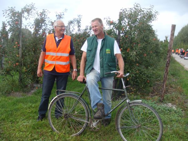 Daarna gingen de boomgaard in, waar Frans aan de mensen uitleg gaf over de groei en pluk van het fruit. Ze wisten niet wat ze zagen, hoeveel fruit er aan de bomen hing.