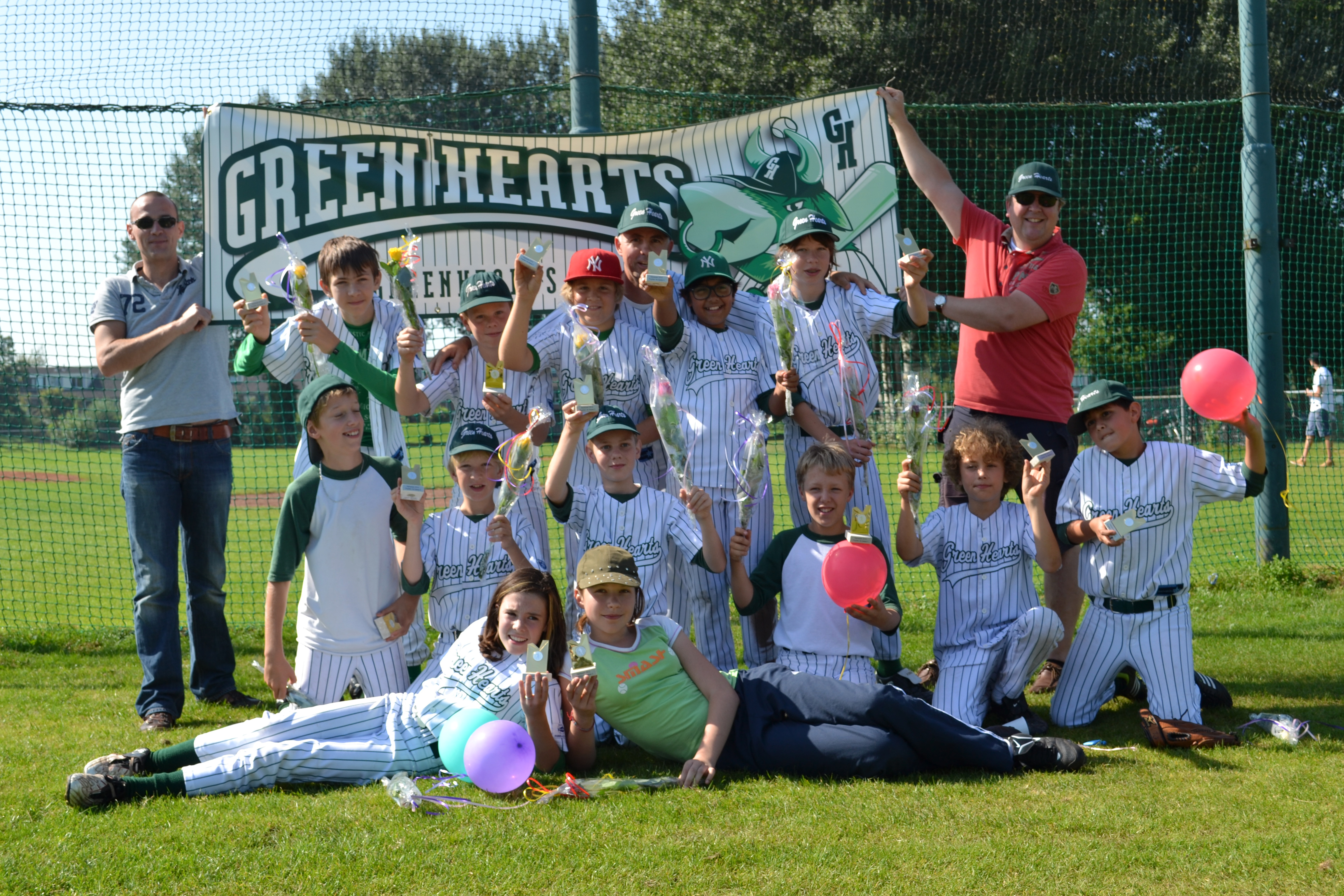 Geplaatst op:17-09-2012 Bijgewerkt op:17-09-2012 20:34 Green Hearts Pupillen 1 kampioenBron: Jan-Dirk TiggelmanHoewel het honkbalseizoen nog niet is afgelopen, zijn de 13 jongens en meiden van het pupillenteam van honkbalverening Green Hearts al kampioen. Met nog drie wedstrijden te gaan, zijn ze niet meer te verslaan.