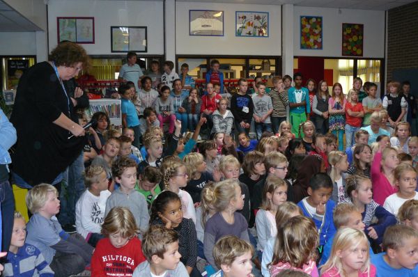 Als afsluiting zongen de leerlingen van groep 7 het lied "Hallo Wereld". De kinderboekenweek was geopend en de komende week zal er veel worden gelezen en ontdekt.