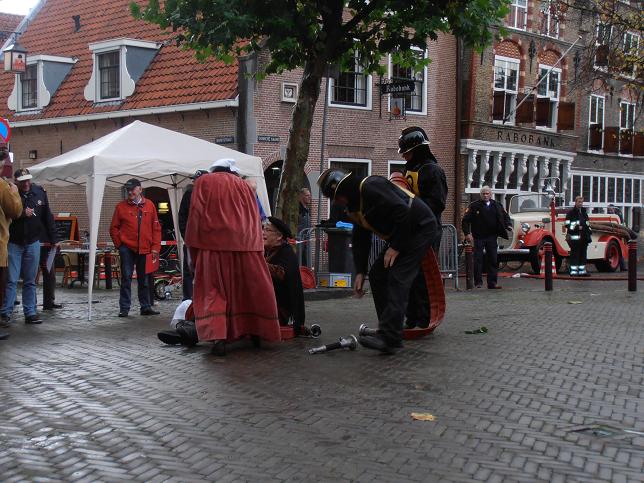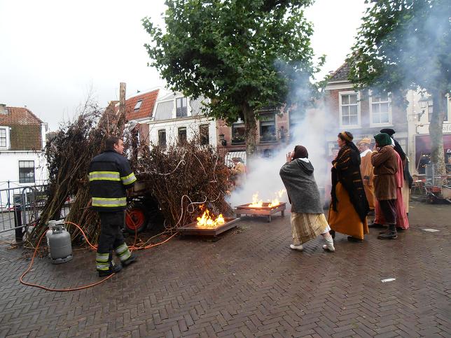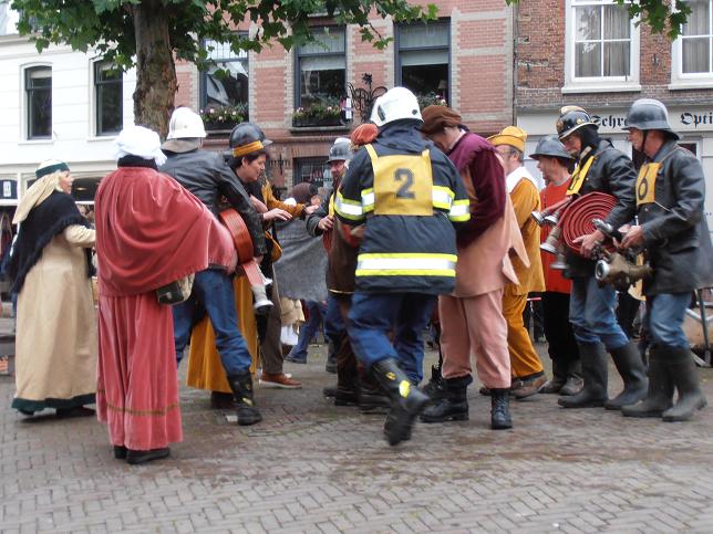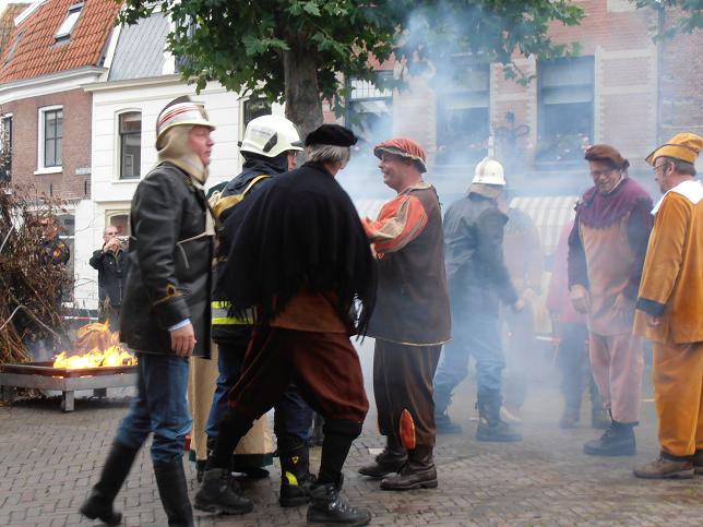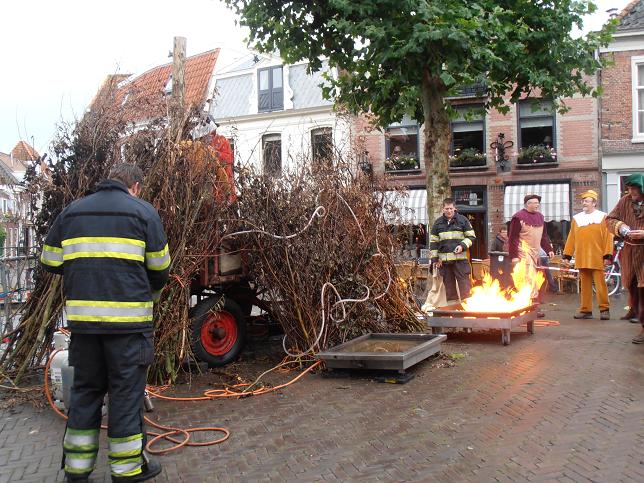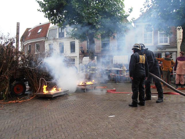Veteranen brandweerkorps Linschoten redden heks van brandstapel