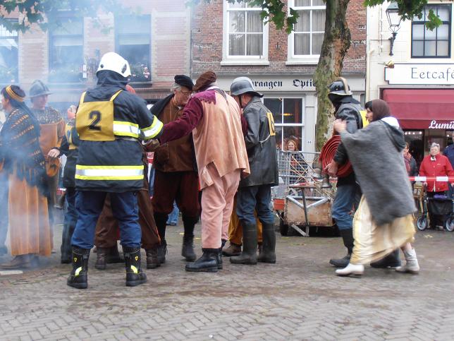 De diverse brandweerveteranen kregen de opdracht de brand te blussen en de vrouw te redden van de brandstapel. Vervolgens werd de vrouw naar een heksenwaag gebracht, gebouwd door Scouting Oudewater, daar werd zij gewogen om te controleren of zij echt een heks was.