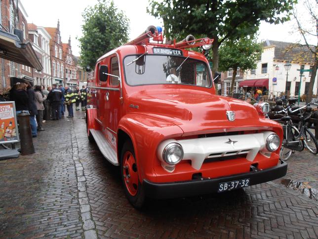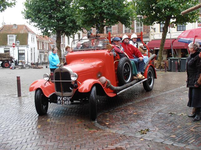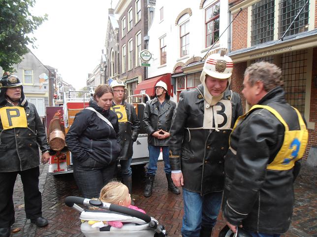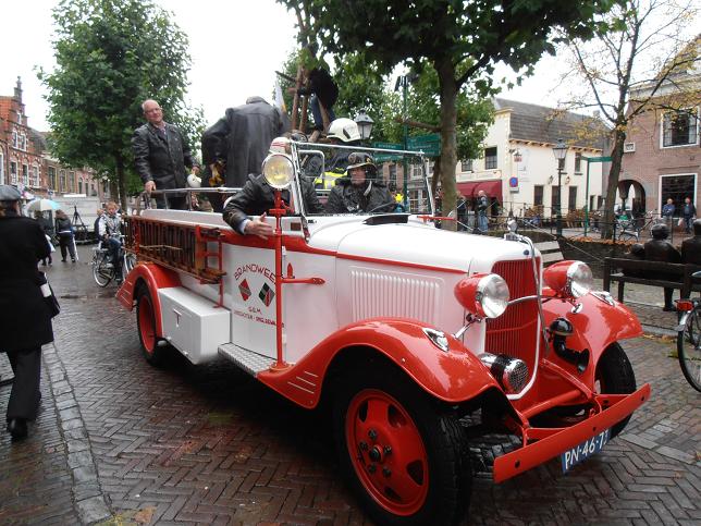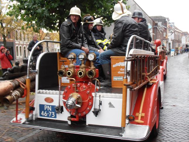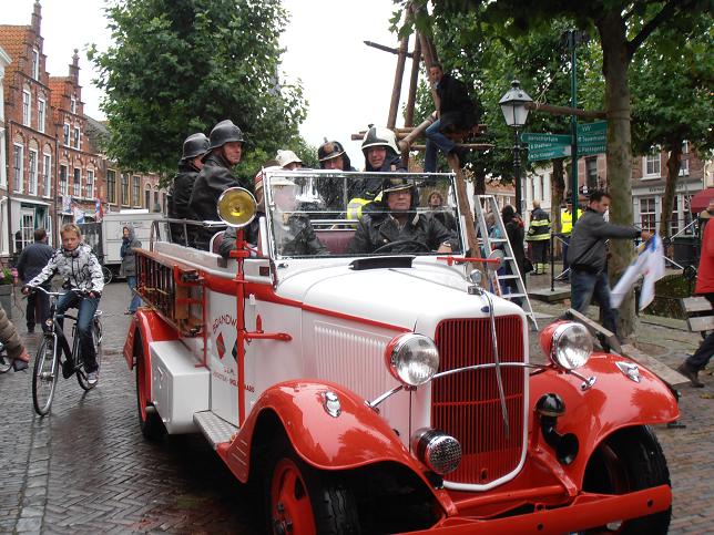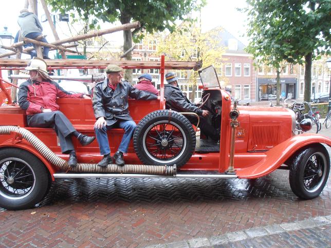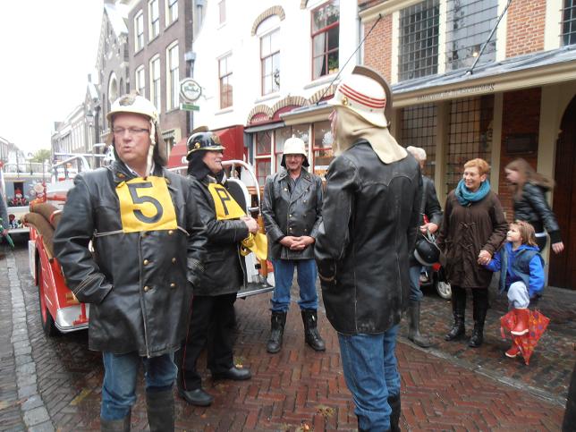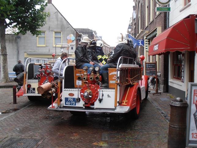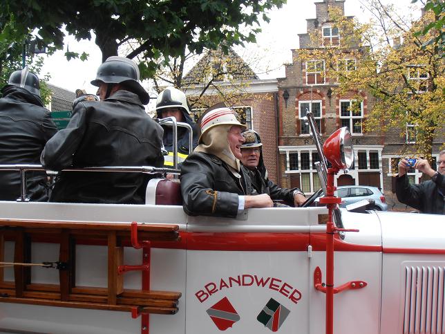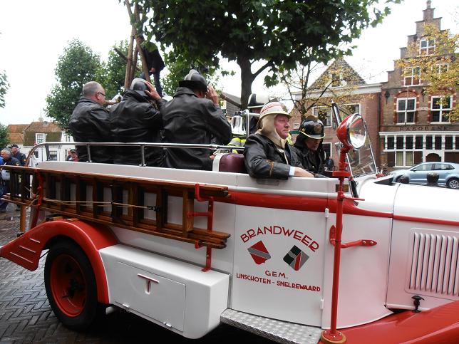 Veteranen van brandweerkorps Linschoten arriveerden op de Markt.