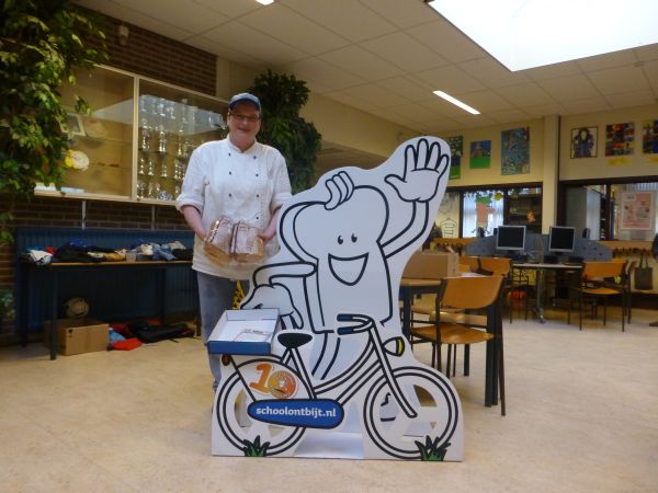 Geplaatst op:02-11-2012 Bijgewerkt op:02-11-2012 15:26 De bakker in de klasBron: Tekst Nettie Kuijer RSM, foto Linda de Ridder HowibloHet Nationaal Schoolontbijt is het grootste ontbijtevenement van Nederland. Elk jaar begin november maken ze van ontbijten een feestje in het hele land. Een week lang. Ook dit jaar hebben zo'n 500.000 kinderen op 2.500 basisscholen samen ontbeten. Het Nationaal Schoolontbijt is niet alleen leuk, maar ook leerzaam. Voor alle groepen is er speciaal lesmateriaal, dat kinderen spelenderwijs het belang van een goed ontbijt laat zien. De bakker of supermarkt uit de buurt levert de ontbijtpakketten bij de school af, compleet met voldoende vers brood. In Montfoort ging Christine van Rooijen op pad naar KBS de Howiblo met versgebakken bruine bolletjes, krenten- mueslibollen en gesneden volkorenbroden.In de klassen stond de margarine, fruitstroop, smeerkaas, fruitpasta, hagelslag en melk al gereed. Samen met placemats en het “Ontbijtspel.” Ontbijten met Wesley Sneijder en Nick en Simon Naast het ontbijt in KBS de Howiblo ontbijten deze week 31.000 kinderen op 158 basisscholen in Utrecht. Met speciaal lesmateriaal leren zij bovendien meer over een goed ontbijt als beste start van de dag. Dat het nodig blijft om het belang van ontbijten te onderstrepen, blijkt uit onderzoek dat Netpanel in oktober deed onder meer dan 3.000 basisschoolkinderen in het hele land. Daaruit komt naar voren dat één op de zes kinderen niet dagelijks ontbijt. Gevraagd naar hun droomontbijt zouden de meeste kinderen het liefst met Wesley Sneijder of Nick en Simon snacks eten voor de TV. Ruim de helft (54%) wil dat hun beste vriend of vriendin daar ook bij is. Het merendeel van de kinderen (67%) bepaalt normaal gesproken zelf waar het ontbijt uit bestaat. Wel hebben ze drie belangrijke tips voor hun ouders om daar invloed op te krijgen: maak ons op tijd wakker, maak het ontbijt voor ons klaar en ontbijt samen met ons. Ontbijten voor een goed doel Elke deelnemende school draagt per ontbijt symbolisch € 0,25 af. Daarmee ontvangen dit jaar twee goede doelen een donatie: het Oranje Fonds en Bake for Life. Het Oranje Fonds steunt sociale initiatieven die mensen bij elkaar brengen. Bake for Life bouwt bakkerijen in de derde wereld en geeft daarmee gehandicapten, oorlogsslachtoffers, wezen, alleenstaande moeders en te jonge schoolverlaters een betere kans.