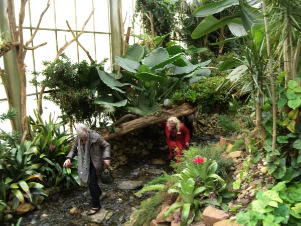 Professionele gidsen in tropenkleding begeleiden de bezoekers door de tuinen. De tropische tuin, een nagebootst stukje oerwoud, huisvest duizenden wilde orchideen, men waant zich in een oerwoud.