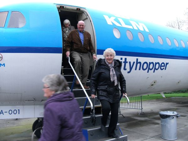 Na een bezoek aan de winkel en een heerlijke lunch reisde het gezelschap door naar het Aviodrome in Lelystad. Ook hier stonden goed bespraakte gidsen gereed om de senioren langs de pronkstukken van het museum te leiden. Al was het hier een stuk kouder dan in de warme orchidee kassen..