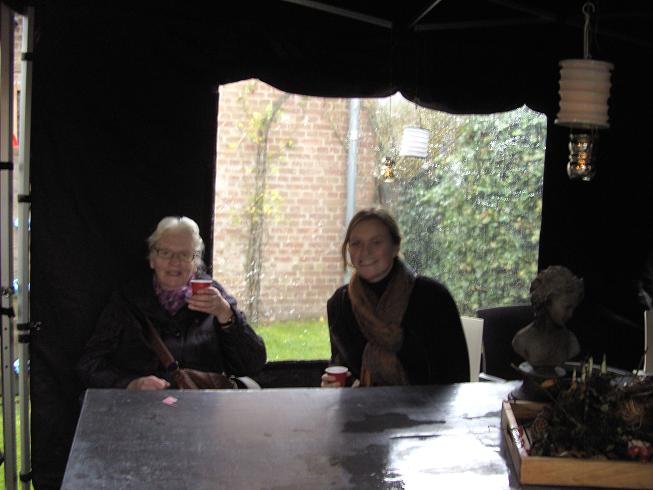 De bezoekers werden welkom geheten met warme chocolademelk. Ook kon men terecht voor een kopje winterthee en allerlei versnaperingen.