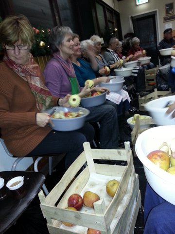 De voorbereidingen voor de jaarlijkse oliebollenaktie zijn weer van start gegaan. Donderdagavond 27 december hebben leden en partners maar liefst 700 kg appels verwerkt tot prachtige schijven voor de te bakken appelflappen.