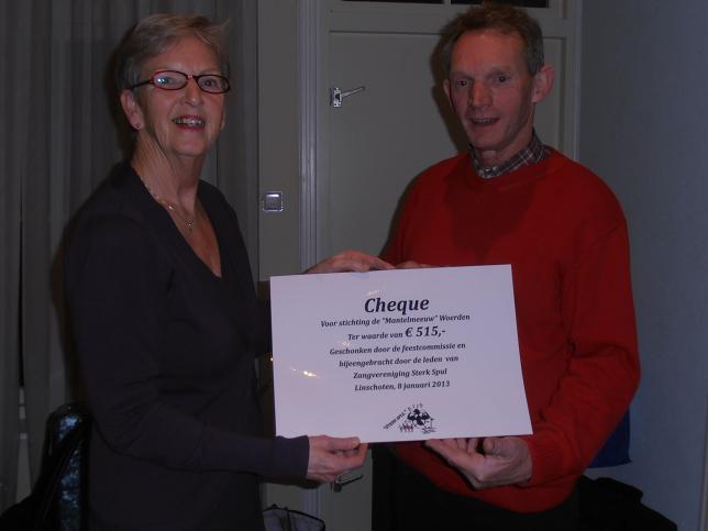 Symbolisch werd op 8 januari 2013 een cheque ter waarde van € 515,- overhandigd aan Sterk Spul-accordeoniste Margriet Sijm, vrijwilligster bij de hospice.
