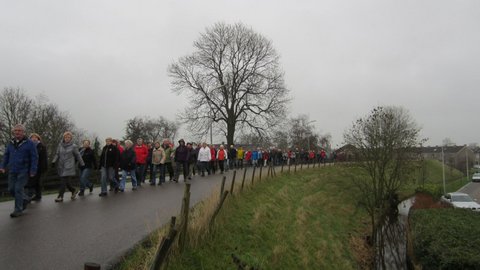 Traditiegetrouw wordt aan het begin van het nieuwe jaar een gezamenlijke wandeling georganiseerd voor de maandagochtend wandelaars. Normaal zijn er 2 twee groepen op de maandagochtend. Een groep loopt 5 kilometer en de andere groep 10 kilometer.Met deze Nieuwjaarswandeling op maandagochtend 7 januari liepen maar liefst 75 !! wandelaars de 7 kilometer rond Haastrecht. Verbaasde gezichten onderweg voor zo’n grote groep wandelaars. Begin en eindpunt van de wandeling was boerderij “De Twee Hoeven”. Aan het eind stond er koffie en appeltaart klaar. Chris Koetsier, voorzitter Knooppunt, had voor iedereen nog wat inspirerende woorden zo aan het begin van het nieuwe jaar. Louis Sleeuwenhoek werd hartelijk bedankt voor de organisatie.