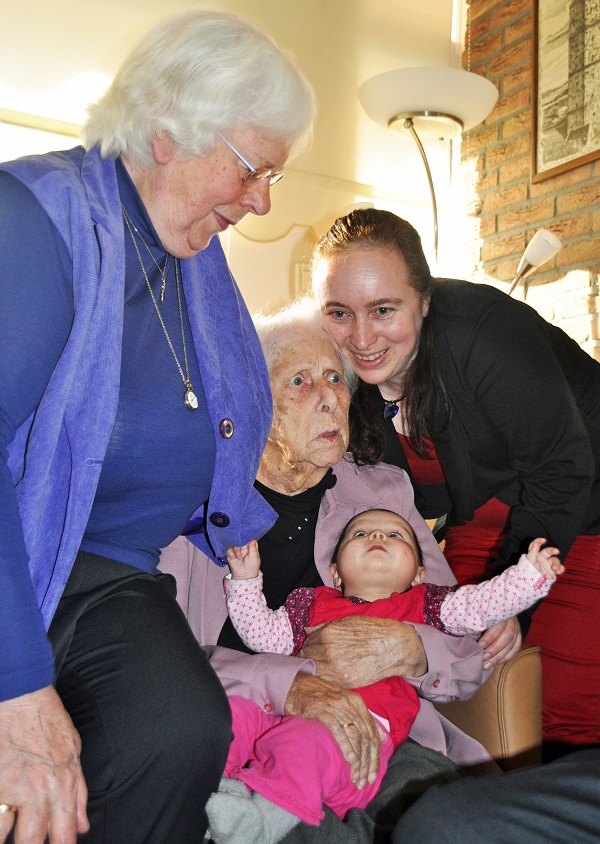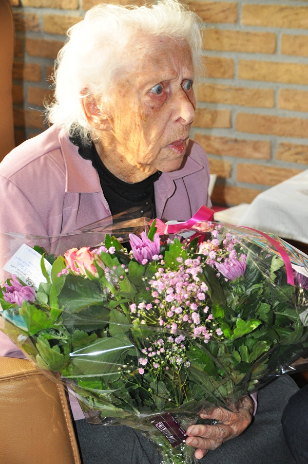 Geplaatst op:12-01-2013 Bijgewerkt op:14-01-2013 16:57 Honderjarige in LinschotenBron: Nancy ZwaalZaterdag 12 januari werd mevrouw Van ’t Riet-Pet uit Linschoten, maar liefst 100 jaar!Ze vierde dit in het gezelschap van haar kinderen, kleinkinderen/achterkleinkinderen en familie in haar dochters huis waar ze tevens ook woont. Mevrouw Van ’t Riet-Pet, heeft naar eigen zeggen, een heel fijn leven er al op zitten. Zij is de laatst levende uit een gezin van 15 kinderen. Ze was erg gelukkig getrouwd met meneer Van ’t Riet, waarmee ze vier kinderen heeft gekregen, 3 zoons en 1 dochter. Ook heeft ze 13 kleinkinderen en maar liefst 14 achterkleinkinderen! Ze is geboren en getogen in Leiden, waar ze vroeger o.a. op scholen schoonmaakte. Veertien jaar geleden kreeg mevrouw een hersenbloeding, waarna ze niet meer goed voor haarzelf kon zorgen. Ze is toen bij haar dochter ingetrokken. Het huis is aangepast en wordt ze goed geholpen door de thuiszorg Karijn. Lichamelijk gezien gaat het nog aardig goed. Haar zicht en gehoor is wel flink achteruit gegaan, en af en toe laat haar geheugen haar wat in de steek, maar vandaag was ze in een goede feest bui! Ook klaart ze helemaal op als haar achterkleinkinderen komen, of als er gezellig visite komt. Ze werd vandaag goed verwend. Naast een bezoek van de Burgemeester met een mooie bos bloemen, kreeg ze ook een brief van de Koningin. De vraag die we ons allemaal stelden: wat is het geheim dat u al 100 jaar hebt mogen worden? Haar antwoord was, elke dag bidden en God danken voor elke nieuwe dag. En geen vreemde dingen eten, maar lekker Hollandse Pot!