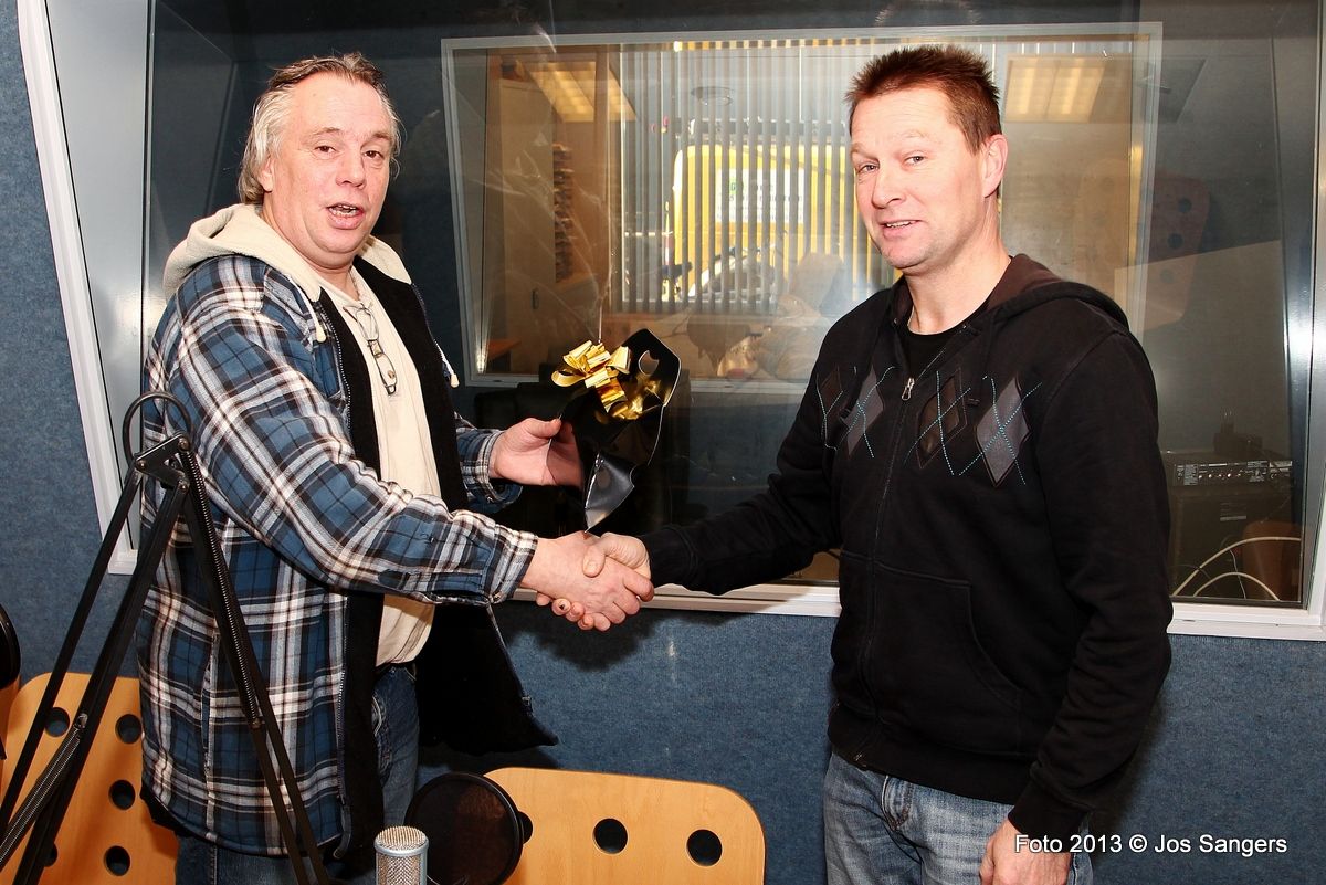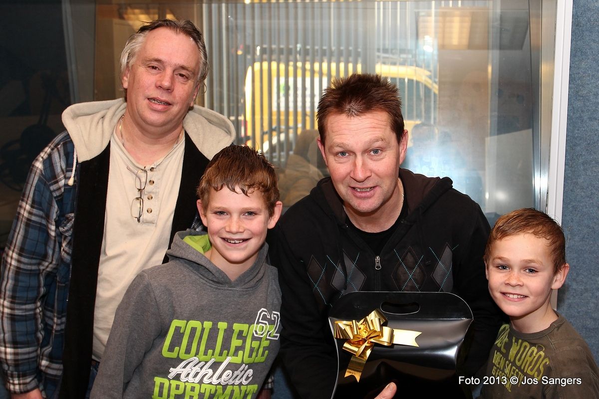 Geplaatst op:13-01-2013 Bijgewerkt op:13-01-2013 12:57 Prijsuitreiking stemmenspel Radio Stad MontfoortBron: Jos Sangers, redactie RSMSinds enige jaren wordt door medewerker Ad Vergeer van Radio Stad Montfoort een stemmen raadspel gepresenteerd. Afgelopen jaar deed hij dit samen met radio medewerker Ries de Mooy.Van begin september t.m. begin december konden alle luisterraars van Radio Stad Montfoort mee raden welke stem ten gehore werd gebracht. Op 16 december werd de finale gespeeld onder de beste 10 deelnemers. Zondag 13 januari 2013 werd de eerste prijs overhandigd in de studio, de tweede en derde prijs zijn inmiddels al bij de winnaars thuisbezorgd. De eerste plaats werd behaald door Benno van den Haselkamp, die hiermee een diner bon voor twee heeft gewonnen, beschikbaar gesteld door café-restaurant het Oude Stadhuis.  Een korte aankondiging door Ad. |  Overhandiging van de door het Oude Stadhuis beschikbaar gestelde diner bon. |  De eerste prijs winnaar Benno had zijn kinderen meegebracht, Ad wilde ook wel op de foto. |