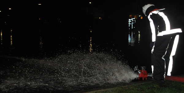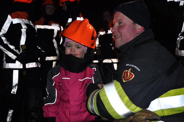 Dit werd gedaan door de Jeugdbrandweer uit Montfoort. De Jeugdbrandweer bestaat uit jongens en meisjes van 12 tot 18 jaar. Zij worden klaargestoomd voor het “echte” werk. Dit was een uitgelezen kans om de kracht van het water in de brandweerslang te ervaren. Deze is zo sterk, dat normaal gesproken bij oefeningen er nooit zoveel kracht op word gezet. Deze inmiddels jaarlijkse gebeurtenis, wordt afgewisseld met oefeningen als ladder klimmen, vuurbenadering en het collecteren voor de brandwonden stichting. Bij dit alles worden ze heel goed gecoacht door de ervaren brandweerlieden. Als de jongeren uiteindelijk willen deelnemen bij de brandweer, moeten ze slagen voor o.a. een toets en is de voorwaarde dat je woonachtig in Montfoort bent. Een brand is natuurlijk nooit te voorspellen, dus iedereen moet 24/7 beschikbaar zijn.Vandaag ging er wel een paar duizend liter water op het doelenplein. Het duurde dan ook zo’n 45 minuten voor het hele plein onder water stond. Naast de (jeugd)brandweer, werd alles goed in de gaten gehouden door meneer Verheul die ijsmeester is. Het was even bikkelen in de kou, maar met een beker lekkere warme chocolademelk en een koekje, verzorgd door een brandweer collega, heeft de Jeugdbrandweer goed werk geleverd. Dit meisje weet nu al wat ze later worden wilt..