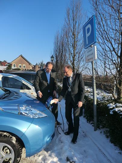 Geplaatst op:17-01-2013 Bijgewerkt op:17-01-2013 10:45 Gemeente Montfoort rijdt 100% elektrischBron: gemeente Montfoort (inclusief foto)Burgemeester Jansen neemt Nissan Leaf in ontvangst Tot oktober 2013 gaat de gemeente Montfoort een 100% elektrische Nissan Leaf rijden. Burgemeester Jansen ontving woensdag 16 januari de sleutel van Bart van Thienen van Nissan. Met het elektrisch rijden wil de gemeente een voorbeeld stellen voor een duurzamere toekomst. Burgemeester Jansen nam de auto met veel plezier in ontvangst: “Het gebruik van een elektrische auto door onze medewerkers, maar ook door collegeleden, is een goede stap voorwaarts. Duurzaamheid lijkt soms zoiets abstracts, maar wij laten hiermee zien hoe het ook kan. Een voorbeeldfunctie die past bij ons als overheidsinstelling en onderstreept ons duurzaamheidsbeleid.” Leaf Centre Linschoten Sinds eind oktober kunnen inwoners van de gemeente Montfoort gratis 2 à 3 dagen een elektrische auto lenen en uitproberen. Het Leaf Centre is onderdeel van de campagne ‘The Big Turn On’, waarbij Nissan probeert mensen enthousiast te maken voor elektrisch rijden. De actie is een groot succes en de auto’s zijn bijna altijd uitgeleend. “We vinden het leuk dat de gebruikers uit Montfoort en Linschoten zo enthousiast zijn over het elektrisch rijden. En het is natuurlijk helemaal leuk dat we dit succesvolle project een vervolg kunnen geven, door het gemeentebestuur van de gemeente Montfoort een elektrische auto aan te bieden. Zij zijn een voorbeeld voor de rest van de gemeente.”, aldus Bart van Thienen, Communications Director Nissan Nederland. De gemeente Montfoort mag tot eind oktober gebruik maken van de elektrische auto. Daarna zal bekeken worden of op basis van de opgedane ervaring ook in de toekomst schoon gereden kan worden. Naast een dak vol zonnepanelen is elektrisch rijden een manier van de gemeente om duurzaamheid te stimuleren.