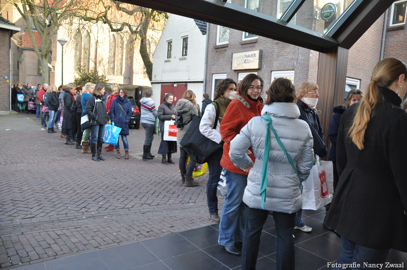 Een groep van 20 vrouwen zorgen ervoor dat deze dag mogelijk is. Om 8.55 uur hebben zo’n 98 mensen een rij gevormd die maar al te graag wat mooie kleren willen scoren.