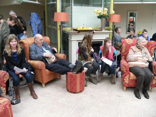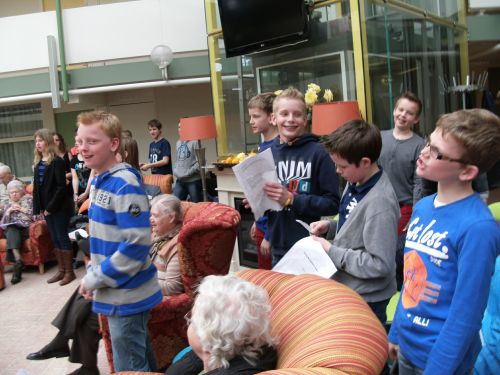Geplaatst op:21-03-2013 Bijgewerkt op:21-03-2013 15:25 Oud en jong zingen in AntoniushofBron: Nettie kuijer, redactie RSMOud en jong zingen in Antoniushof In Antoniushof in Montfoort wordt iedere donderdag tussen 14.00-15.00 uur heerlijk gezongen door jong en oud. De repetities van het intergeneratieve Care&Culture koor, waarin senioren, bewoners van Antoniushof en kinderen van basisschool de Howiblo samen zingen zijn heerlijk om bij te wonen. Het Koor heeft 4 april de generale repetitie. De eenvoudige presentatie zal op vrijdag 5 april om 19.00 uur zijn. Wilt u meer weten over dit koor of verder activiteiten, neem dan contact op met: margreetmelman@gmail.com, of 06 430 460 18