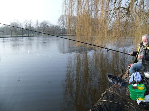 Geplaatst op:30-03-2013 Bijgewerkt op:01-04-2013 07:45 Vissen bij drie graden onder nul: de uitslagBron: Joop en Nettie Kuijer, Joop WijmanPaaszaterdag 30 maart troffen de Montfoortsehengelsporters elkaar bij de Gracht voor de eerste wedstrijd van het seizoen. Hetwas minstens drie graden onder nul, en een groot deel van de Gracht wasdichtgevroren. “Met 100 gram lood vissen?” stelde Joop Wijman voor, “Dan stootje zo door het ijs.” Diehards, die vissers. Ruim de helft van de aanwezigen(drie stoere mannen) stelden hun vis kruk op het bevroren gras en gooiden delijnen uit.  IJs aan de lijn... | | | | | |