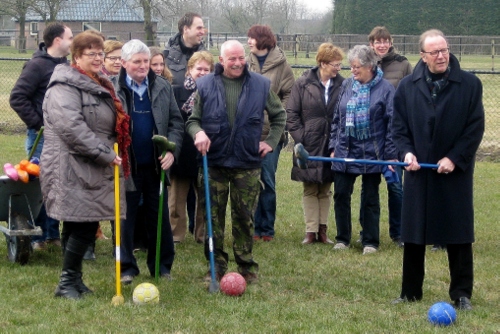 Om drie uur in de middag bij boer hans voor een gratis spelletje klompengolf.