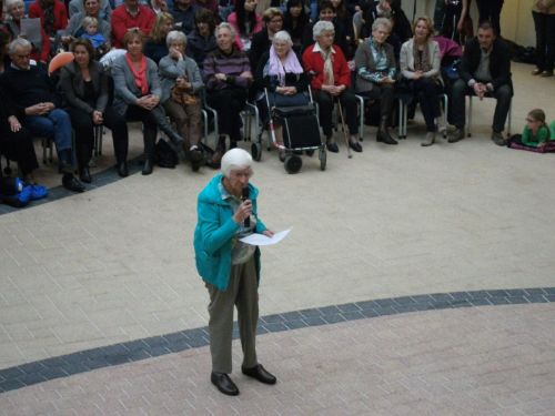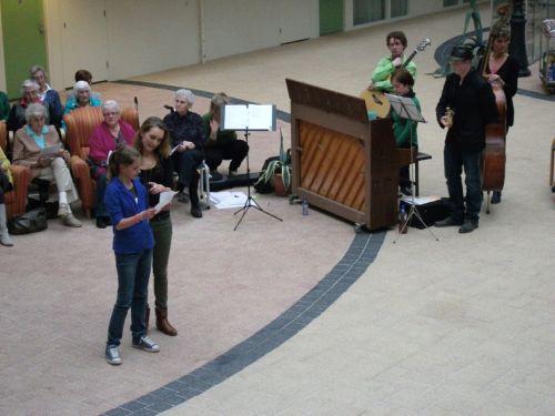 Senioren van o.a. Antoniushof en kinderen van basisschool deHowiblo hadden wekenlang gerepeteerd om “liedjes van toen” in te studeren.Enkele scholieren en ouderen lazen hun verhaal voor, ontroerend en eerlijk.