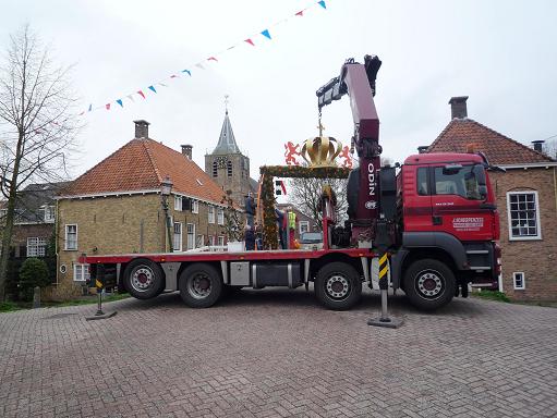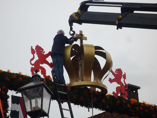 Vier weken lang is gewerkt aan de erepoort. Omstreeks 30 vrijwilligers hielpen mee het dingen te maken i.v.m. de Inhuldiging van Koning Willem Alexander.