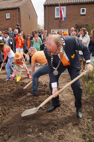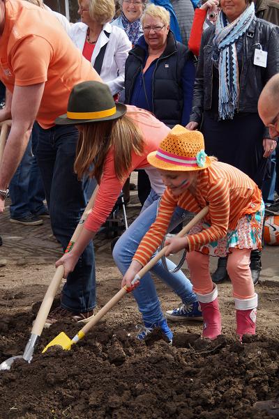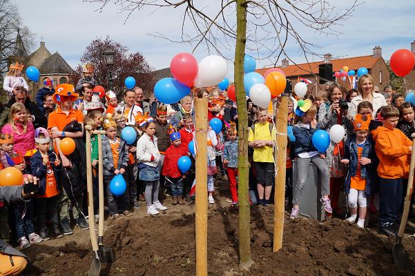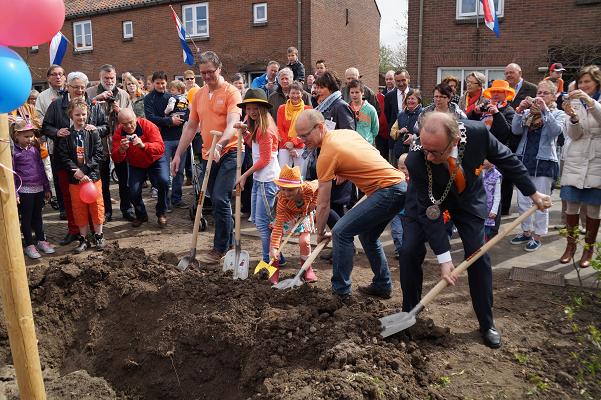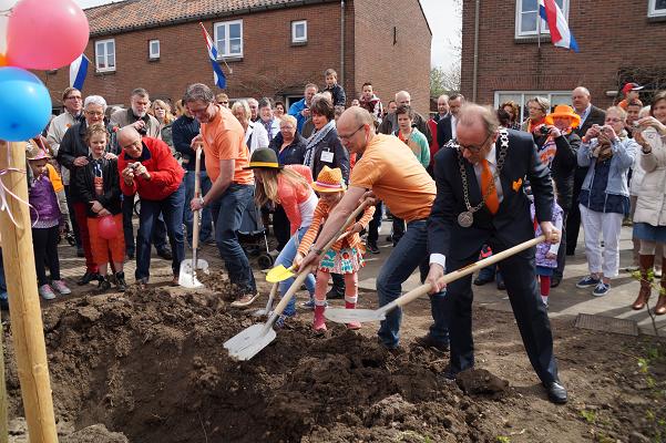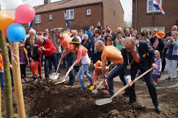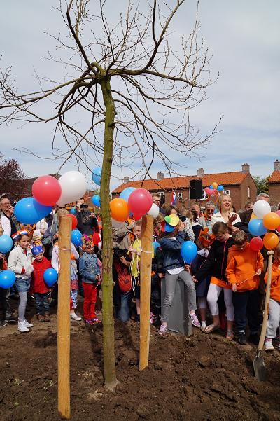 Het planten van de Koningslinde samen met enkele jarige inwoners van Linschoten.