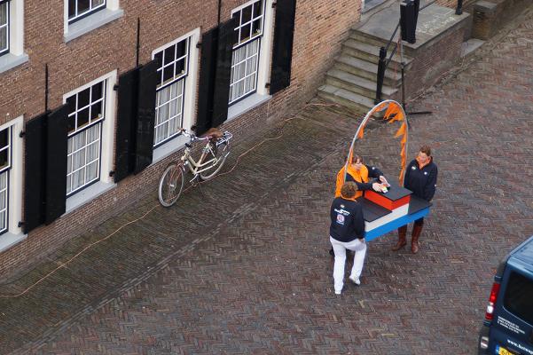 En voor de festiviteiten in Amsterdam rondom de troonswisseling hoefde men ook niet thuis te blijven want in de brandweerkazerne hing een groot scherm waar alle activiteiten te volgen waren, natuurlijk onder het genot van een hapje en drankje.