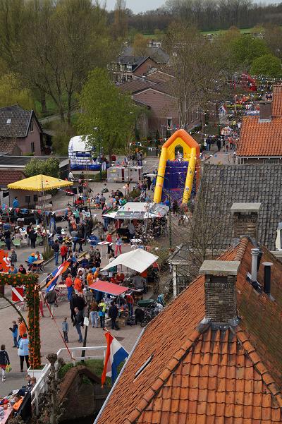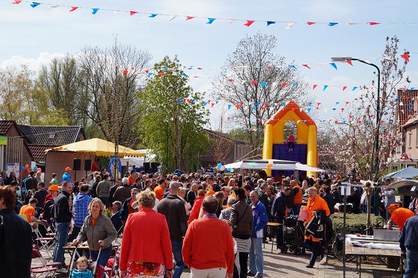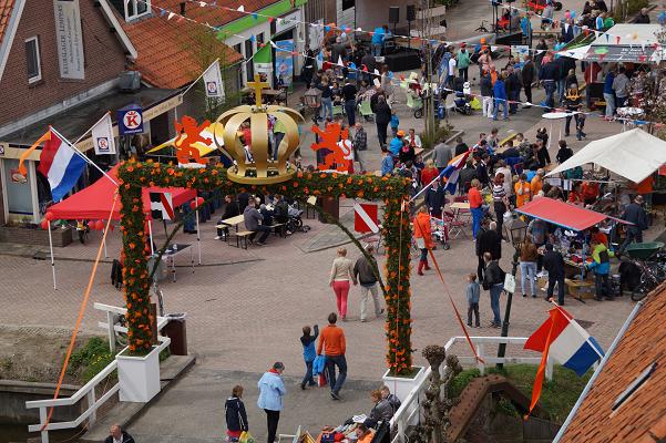 Koninginnedag 2013 werd in Linschoten één groot feest. Een mooie Kroonpoort, prachtig weer en veel gezelligheid op straat.