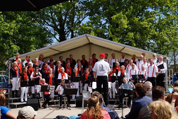 De leden van het zangkoor Sterk Spul uit Linschoten stapten donderdagochtend 9 mei in een touringcar om vanuit Linschoten naar de Nationale Sleepbootdagen in Vianen te vertrekken.