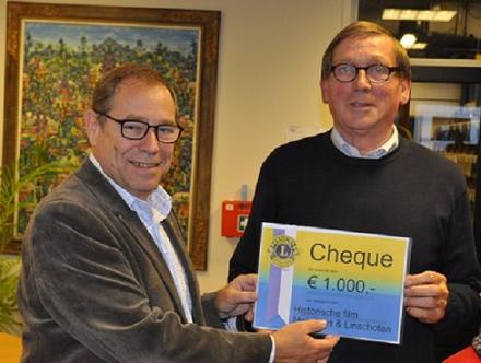 Ieder jaar worden door Lionsclub ‘t Stigt  tijdens de Lentemarkt rozen verkocht. De opbrengst hiervan wordt beschikbaar gesteld voor een goed doel. Dit jaar gaat de opbrengst naar de 2 historische films die gemaakt worden voor leerlingen van de hoogste klassen van het basisonderwijs. Deze week werd door de president van de Lions, Wien de Rouw, een cheque van € 1.000,-- overhandigd aan Evert de Jong, mede initiatiefnemer van de film.  De opnamen voor de film hiervoor zijn inmiddels gestart. Met deze bijdrage van de Lions is men in staat om naast de film voor de leerlingen  ook begeleidend materiaal te laten maken.