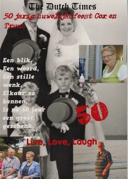 Zo'n 55 jaar geleden kwam de 21 jarige Cor verschuur uit Woerden de 17 jarige Truus Nieuwenhuizen uit Vleuten tegen in dansgelegenheid Bart van Eijk in Woerden. De eerste avond dat ze elkaar hebben leren kennen bracht Cor danspartner Truus heel gelant naar de trein richting Vleuten. Op de vraag van hun dochter of ze de eerste avond meteen al gezoend hadden gaf het paar wijselijk geen antwoord. Na vijf jaar verkering kochten Cor en Truus een huis aan de Acacialaan in Linschoten, later verhuisden zij naar de Veldzichtlaan en nu wonen zij in de Strick van Linschotenstraat. Het gouden bruidspaar heeft één zoon, één dochter en vier kleinkinderen. Cor werd in zijn militaire diensttijd bij de luchtmacht opgeleid tot radiomonteur, daarna heeft hij dat vak uitgeoefend bij Philips in Hilversum en later bij Van den Pol in Montfoort. Truus heeft jaren gewerkt bij de Bijenkorf in Woerden en is later bij melkboer Van de Graaf in Linschoten gaan werken. De hobby's van Cor bestaan uit computeren, fotograferen en muziek maken bij Linfano, verder doet hij vrijwilligerswerk bij het bejaardenhuis. Truus haar hobby's zijn het inkleuren van Mandala's en lezen, verder is zij druk met de bingo en verdere voorkomende werkzaamheden in het bejaardenhuis. De redactie van Radio Stad Montfoort wenst het bruidspaar nog een lang en gelukkig leven toe.