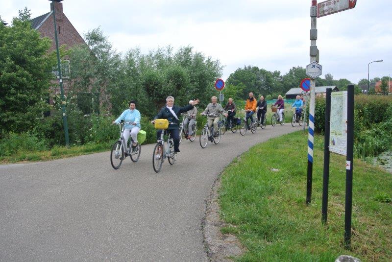 Geplaatst op:23-06-2013 Bijgewerkt op:27-06-2013 13:27 11-BuurtengezinsfietstourtochtBron: Montfoortse IJsclubOp vrijdagavond 21 juni heeft t.g.v. het 125 jarig bestaan van de Montfoortse IJsclub de eerst 11-Buurtengezinfietstourtocht plaatsgevonden. Ondanks de wind en de dreigende regen verschenen er 31 deelnemers aan de start. Onder begeleiding van een gids zijn er drie groepjes vertrokken richting Marnemoende, vervolgens richting IJsselstein en dan via Benschop weer terug naar Montfoort. De 11 buurten die men heeft aangedaan waren: | A | Montfoort (Blokhut) | | B | Hofland (Parklaan | | C | Blokland | | D | Stuivenberg (Stuivenbergseweg) | | E | Achtersloot (oversteken richting Marnemoende) | | F | Eiteren | | G | IJsselstein (centrum) | | H | Groenvliet | | I | Benschop (Boveneind) | | J | Benschop (Dorp) | | K | De Bleek (Montfoort | In Benschop was er bij de familie Vlooswijk een koffiestop met een rondleiding door de nieuwe melkstal met melkrobot. Deze rondleiding werd door de deelnemers als "zeer interessant" beoordeeld. Met een appeltje voor de dorst verzorgd door Frans van Vliet werd de fietstocht weer vervolgd, op naar de feesttent. Bij de blokhut stond een drankje en een hapje klaar en kon er nog even gezellig worden nagepraat. Het bleef nog lang gezellig in het park, ondanks het slechte weer.