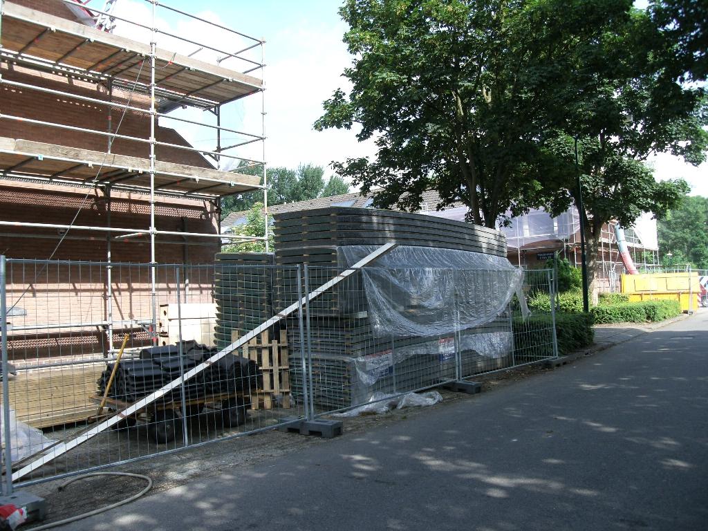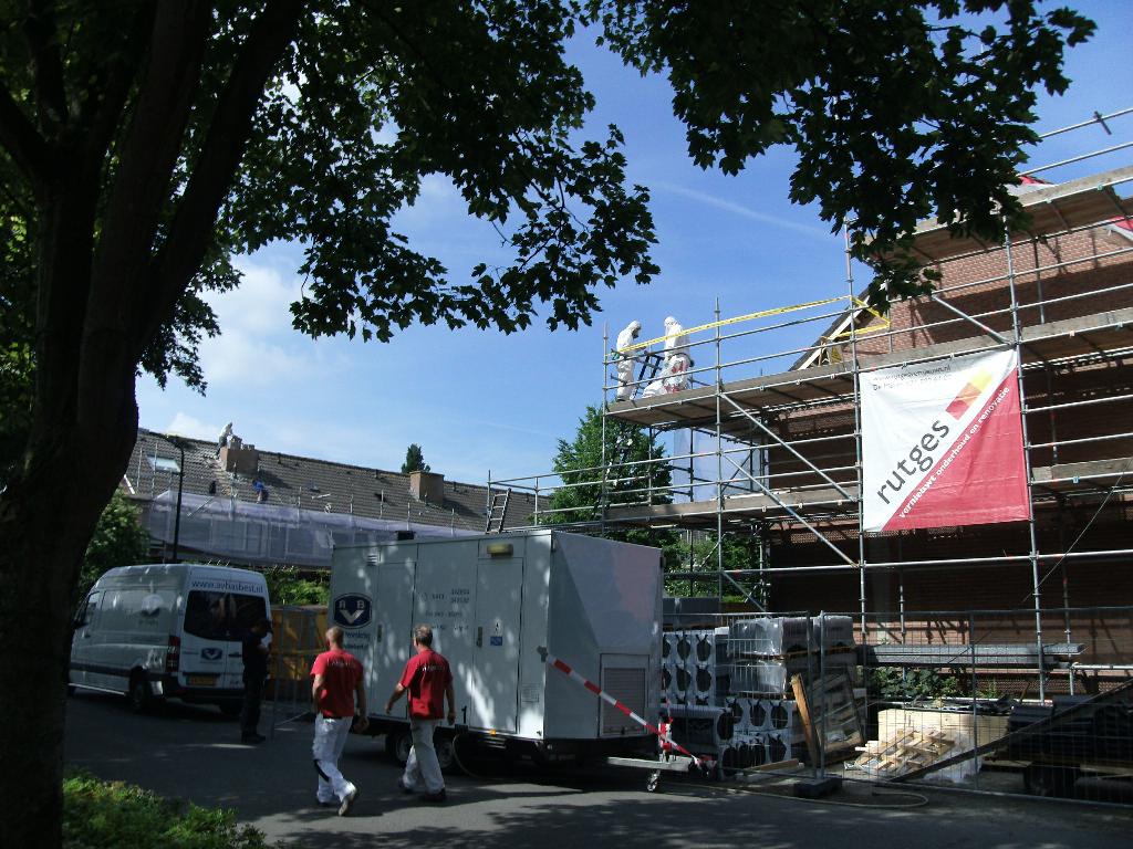 Geplaatst op:02-07-2013 Bijgewerkt op:02-07-2013 17:46 Mannen in witte pakken op HeulesteinBron: Nettie Kuijer, redactie RSMNa de grote renovaties van de huurwoningen op o.a. de Lodewijkstaat en de Poorterstraat worden ook op Heulestein in Montfoort alle zeilen bijgezet. Aan 18 woningen wordt groot onderhoud uitgevoerd, waarbij men niet over één nacht ijs gaat. Zo zijn o.a. de muren gezandstraald, en worden badkamer, keuken en toilet gemoderniseerd. De daken worden geïsoleerd, dakpannen en schoorstenen vervangen. Bij het vervangen van de schoorstenen is een asbestverwijderingsbedrijf ingezet. Maandenlang zijn de straat en de parkeerplaatsen bezet door steigers, containers en bedrijfsbusjes. Scholieren kunnen beter even niet over Heulestein fietsen, maar een alternatieve route kiezen via het (tijdelijke) fiets/voetpad achterom, of, nog beter, via de andere kant van het scholencomplex. De kinderen naar school brengen met de auto via Heulestein is even niet aan te raden. Volgens de uitvoerend opzichter is het werk gereed voor de bouwvakvakantie, in ieder geval zijn dan de steigers weg.