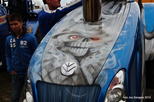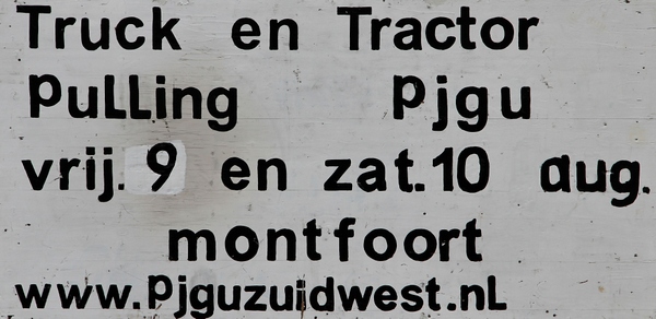 | Afgelopen Vrijdag 9 augustus en zaterdag 10 augustus vond weer de jaarlijkse truck- en tractorpulling plaats bij de familie Scholman aan de M.A. Reinaldaweg in Montfoort. Het evenement dat al jaren door de P.J.G.U zuidwest Utrecht zeer professioneel en zeer goed opgezet wordt, trok (mede door het goede weer) zeer veel bezoekers en was wederom erg spectaculair om te aanschouwen. De vele verschillende manches, o.a. standaard-hobbysport en bakwagenklasse, compact diesel, light superstock, Modifies Grand National enz., gaven weer veel kijk-, luister- en reukplezier. Dat de dames zeker in niets onderdoen voor de heren, blijkt wel uit de eerste prijswinnaar in de 3,5 ton standaard klasse: Grianne Verweij. |   | | Op vrijdagavond gaven de Trucks de aftrap | | |  | | Jammer, net geen Full Pull | | |  | | Full Pull | | |  | | Wat een kracht | | |  | | Bij winnaars horen prijzen | | |  | | Personenauto's met wel 750 PK onder en boven de motorkap | | |   | | Af en toe beperkt zicht | | |  | | Wat een techniek | | |  | | Schitterend geairbrushed | | |  | | Ook aan de kinderen is gedacht | | |  | | Waar gehakt wordt vallen spaanders | | |
