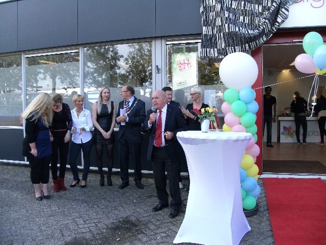 Geplaatst op:04-10-2013 Bijgewerkt op:04-10-2013 15:20 Feestelijke opening BeautyPlaza Montfoort.Bron: Nettie Kuijer, redactie RSMGezien de huidige tijd en economie zag het Bedrijvencentrum Montfoort een nieuwe kans op het gebied van samenwerking van kleine bedrijven die elkaar op het vakgebied versterken. Vanuit de koker van het Bedrijvencentrum Montfoort bestond een idee voor een Body & Care, mede onder leiding van de door hen benaderde Lotte Veenbrink. BeautyPlaza Montfoort opende vrijdag 4oktober de deuren en deed dat op feestelijke wijze. De heer Huub Bonenkamp, eigenaar van Bedrijvencentrum Montfoort op het IJsselveld, opende de salon na een korte toespraak door een doek “weg te blazen.” Ook burgemeester Bert Jansen wenste de zes energieke ondernemers veel succes. BeautyPlaza staat voor alles op het gebied van beauty en body. Zij bieden alles aan als het gaat om schoonheid. Onder andere een kapsalon, nagelstylist, zonnebankstudio, schoonheidssalon en een lunchroom zijn hier gevestigd.  Gezellig muziekje erbij |  | | | U vindt de salon op Waardsedijk Oost 10-1