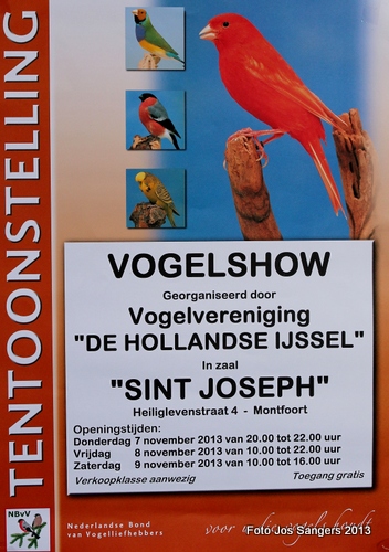 Vogelvereniging Montfoort houdt van donderdag 7 tot en met zaterdag 9 november weer zijn jaarlijkse vogeltentoonstelling in het St. Joseph. In totaal worden zo’n 200 prachtige kanaries, tropen en parkieten tentoongesteld. De toegang is gratis. Er is ook een verkoopklasse en een tombola met mooie prijzen. Openingstijden: donderdag van 20.00 tot 22.00 uur; vrijdag van 10.00 tot 22.00 uur; zaterdag van 10.00 tot 16.00 uur.