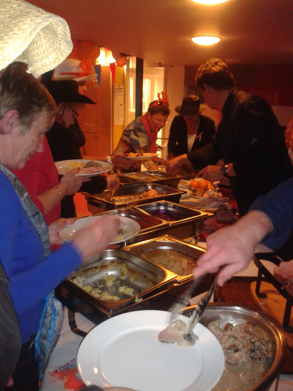 Het buffet smaakte dit jaar ook weer voortreffelijk en iedereen was verrast door dit bezoek.