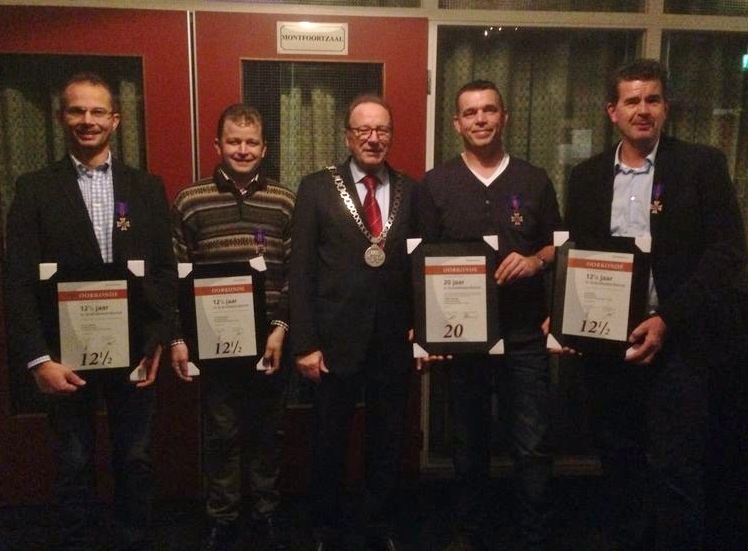 Geplaatst op:16-12-2013 Bijgewerkt op:16-12-2013 10:16 Huldigingen tijdens jaarlijkse brandweeravond MontfoortBron: Mendy van Daalen, Adviseur Communicatie Brandweerdistrict Rijn & VenenTijdens de jaarlijkse brandweeravond van de VRU brandweer Montfoort op zaterdag 14 december jl. zijn de jubilarissen gehuldigd. Eén keer per jaar organiseert de VRU brandweer Montfoort een officiële feestavond waar de brandweerlieden mede door de burgemeester in het zonnetje worden gezet. Respectabele prestaties Onderscheidingen werden op deze avond uitgereikt aan Wim van Ieperen, Ferdinand Timmerarends en Jos Vianen voor 12,5 jaar brandweerdienst. Paul Ebskamp ontving een onderscheiding voor 20 jaar brandweerdienst. Prachtige prestaties om je met zo veel enthousiasme zo lang in te zetten voor de organisatie! Terug-en vooruitblik De bijzondere meldingen werden deze avond opgehaald. Tot dat moment is er 45 maal een beroep gedaan op de VRU brandweer Montfoort voor brand en hulpverlening. .jpg) Van links naar rechts: Wim van Ieperen, Ferdinand Timmerarends, Burgemeester Jansen, Paul Ebskamp, Jos Vianen | Burgemeester Jansen bedankte de brandweerlieden van Montfoort voor hun geweldige inzet. Postcommandant Paul Ebskamp: “Deze avond zijn er vier onderscheidingen uitgereikt aan brandweervrijwilligers die in totaal 57½ jaar ervaring hebben in het brandweervak. Als postcommandant ben ik dan ook enorm trots op jullie. Trots op dat jullie nog steeds actief willen zijn voor de brandweer en voor de medemens. De snelle hulp aan de gemeenschap staat voor ons altijd voorop. Ik wil alle leden van de post bedanken voor hun inzet het afgelopen jaar.” “Voor het komende jaar staat er voldoende op stapel’’, vervolgde Paul. “Een ploeg van ons reist in 2014 af naar een Oefencentrum om daar een tweedaagse realistische training te volgen. Brandweerlieden volgen deze training om de twee jaar om hun geoefendheid op peil te houden zodat zij goed voorbereid zijn op eventuele incidenten.” De postcommandant heeft er het volste vertrouwen in dat de post op alle ontwikkelingen goed kan anticiperen en dat “we onze kracht als post Montfoort het komende jaar ook weer kunnen laten zien aan diegenen die onze hulp nodig hebben”. Veiligheidsregio Utrecht De Veiligheidsregio Utrecht is een samenwerkingsverband van de 26 Utrechtse gemeenten. De VRU coördineert de veiligheid van alle inwoners in de provincie Utrecht.