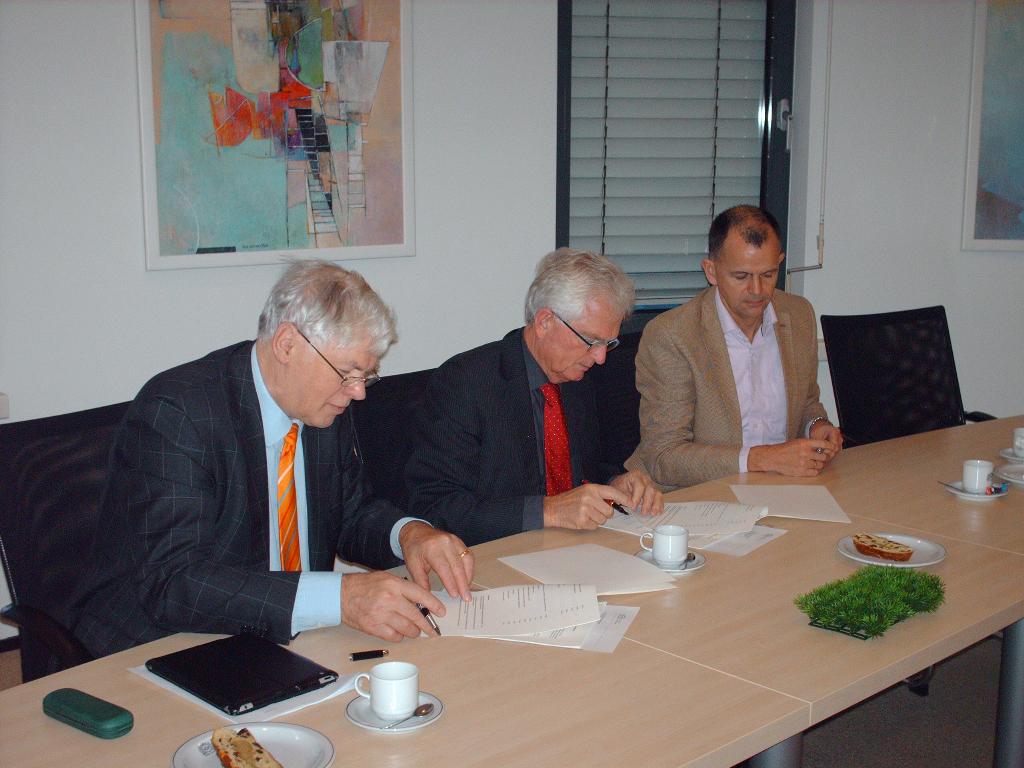 Geplaatst op:19-12-2013 Bijgewerkt op:19-12-2013 20:16 Gemeente en Stichting Beheer Sportpark RapijnenBron: gemeente Montfoort (foto's Radio stad Montfoort)Wethouder Vlaar heeft donderdag 19 december samen met de voorzitter Piet Koster en penningmeeser/secretaris Dirk de Vries van Stichting Beheer Sportpark Rapijnen (SBSR) de handtekening gezet onder de overeenkomst ‘Vernieuwing Sportpark Rapijnen’. In deze overeenkomst staan de afspraken over het aanleggen van de kunstgrasvelden in Linschoten. Kostenverdeling aanleg en onderhoud Belangrijk onderdeel van de overeenkomst is de kostenverdeling. De gemeente draagt voor 2/3 bij aan de kosten voor de aanleg. De verenigingen LUNO en VVL staan garant voor 1/3 van de kosten. Daarnaast hebben de gemeente en SBSR een huur- en onderhoudsovereenkomst ondertekend. Hierin is vastgelegd dat de SBSR de kunstgrasvelden gaat beheren en onderhouden. De sportparken in Montfoort en Linschoten hebben hiermee dezelfde afspraken omtrent kosten en onderhoud voor de sportvelden. Wethouder Vlaar is blij met deze mijlpaal. “Met de overhandiging van een symbolisch stukje kunstgras hebben we een goede stap gemaakt in het realiseren van een toekomstbestendig sportpark in Linschoten. Ik heb het volste vertrouwen in de stichting en kijk uit naar de heropening van het vernieuwde sportpark bij de start van het nieuwe sportseizoen.” |  Het symbolische stukje kunstgras! | Planning In januari start SBSR met de aanbesteding van het project. Naar verwachting starten de werkzaamheden in mei 2014, zodat de aanleg van de velden gerealiseerd is bij de start van het nieuwe seizoen in september 2014.