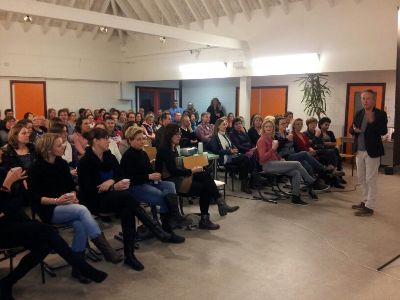 Geplaatst op:17-01-2014 Bijgewerkt op:17-01-2014 22:15 Druk bezochte ouderavond social mediaBron: Frans van VlietMaandagavond was de centrale hal van het Scholencomplex zeer goed gevuld met 85 ouders van de beide katholieke basisscholen Howiblo en Heeswijk. Op initiatief van de directie van de beide scholen werd er voor het eerst gekozen voor 1 gezamenlijke ouderavond over social media. Heleen Offerhaus van Ouders en Co gaf een boeiende presentatie over de kansen van de vormen van social media (b.v. informatieverwerving, communicatie, entertainment, bevordering leesvaardigheid en creativiteit), maar ging ook in op de minder gewenste kanten van social media (waaronder eenzaamheid, onrust, pesten). Er werden diverse tips en trucs voor ouders gegeven om afhankelijk van de leeftijd van hun kinderen het juiste digitale pad samen met hen te volgen. Al met al een zeer geslaagde, informatieve, eerste gezamenlijke ouderavond!
