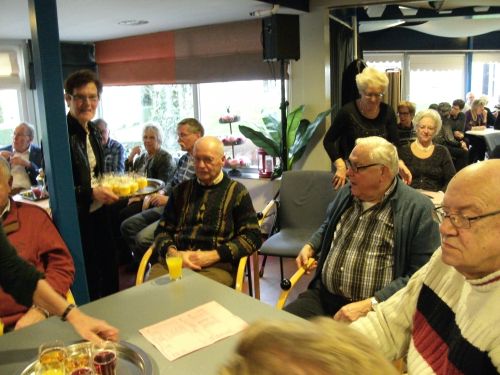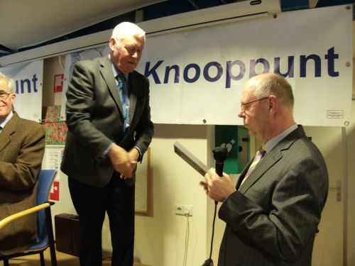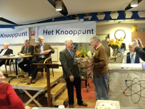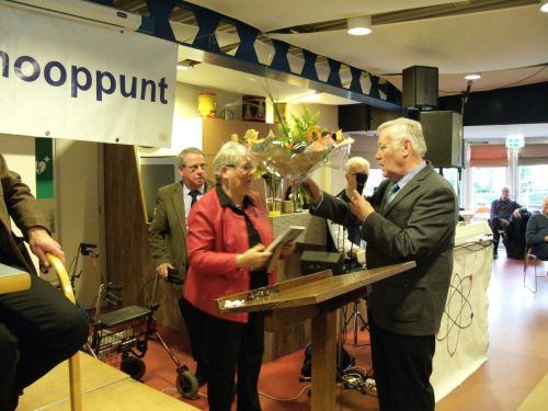 Geplaatst op:13-02-2014 Bijgewerkt op:14-02-2014 21:29 1000e lid seniorensociëteitBron: Nettie Kuijer, redactie Radio Stad MontfoortWoensdag 12 februari was de grote zaal in Antoniushof in Montfoort weer tot de nok gevuld met leden van seniorensociëteit het Knooppunt voor de jaarlijkse ledenvergadering. Chris Koetsier, de aftredende voorzitter, vertelde met trots dat de groei niet te stuiten is. Vandaag werd het 1000e lid verwelkomd! Ab de Kruijf, het 1000e lid | kl.jpg) | Met humor werden de agendastukken gebracht: “Er zijn geen ingekomen stukken,” met daar achteraan: “ Ik zie er genoeg in de zaal hoor.” Zelfs Johan de Jong, van de kascontrolecommissie, had de lachers op zijn hand bij het ernstige verhaal over vier cent kastekort. 45 Jaar brengt het Knooppunt senioren bij elkaar, en biedt vele mogelijkheden tot ontspanning, sport, leren en hobby. “Het Knooppunt prikkelt,” is de nieuwe leus. Met 50 vrijwilligers is de seniorensociëteit rijk aan inspiratie en hulp. De kas is gelukkig nog steeds gezond, maar in verband met het komende jubileum werd voorgesteld de jaarlijkse bijdrage te verhogen tot €7,50 kl.jpg) Geertje Kemp nam afscheid als bestuurslid | kl.jpg) | Muziek van Arie omlijstte de vergadering, hapjes en drankjes werden rondgebracht, het was weer goed verzorgd. Theo Kortenhof is de nieuwe voorzitter. A.s. zaterdag van 11.00-12.00 uur is hij te gast in de studio van Radio Stad Montfoort. U kunt de rechtstreekse uitzending volgen op de radio via 102.9 op de kabel, 106.8 in de ether, of via RSM Tekst-TV.