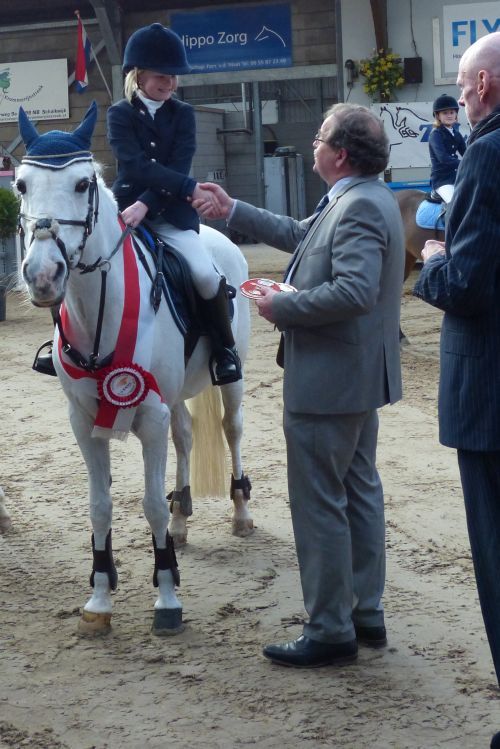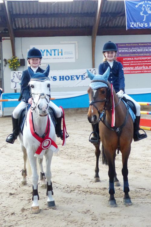 Amy kon daarmee, ondanks haar jonge leeftijd, al haar zevende Kampioenslint ophalen. Bovendien is ze nu dit seizoen Provinciaal Kampioen in twee disciplines geworden, want vorige maand behaalde ze haar pony Balou ook al het Kampioenschap Dressuur in de klasse B. Maar ook Jessy verbeterde zich qua stijl in de barrage en kon na een prachtige nulronde met 85 punten voor stijl het reservekampioenschap mee naar huis nemen. Jessy wist daarnaast ook nog een 4e prijs te behalen in de klasse B cat. D/E met haar palomino pony Filippien. Hoewel Jessy zich meer wil ontwikkelen in de dressuursport weet ze toch ook in de springsport steeds om de prijzen mee te strijden, zodat ze het voorlopig allebei maar blijft doen.