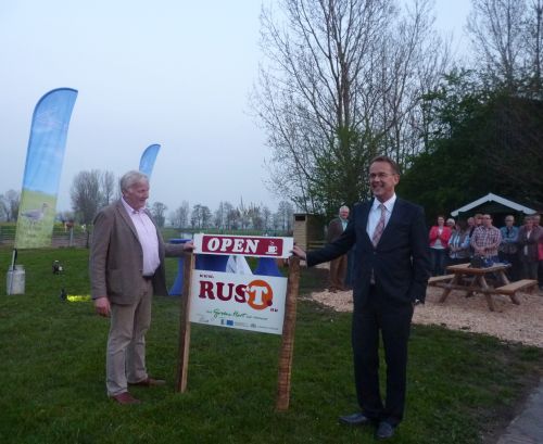 Geplaatst op:03-04-2014 Bijgewerkt op:06-04-2014 15:59 Rustpunten in Groene Hart geopendBron: Jos� van Miltenburg, projectco�rdinator. Uitblazen op het platteland Woensdagavond 2 april heeft de Utrechtse Gedeputeerde Bart Krol officieel de nieuwe 25 Rustpunten in Utrecht West in gebruik genomen. Hij deed dat symbolisch door het bordje “open” te plaatsen bij de nieuwe Rustpuntlocatie van de familie Hoogenboom aan de Damweg te Oudewater. Gedeputeerde Krol roemde daarbij motivatie van de 25 nieuwe Rustpunthouders om hun bedrijf of locatie op het platteland open te stellen voor toeristen en recreanten. Deze mensen zijn trots op hun woon- en werkplek en willen dat graag delen met anderen. Dat is goed voor het wederzijds begrip tussen boeren en burgers en goed voor de toegankelijkheid van het platteland. Rustpunten zijn kleinschalige voorzieningen op het platteland waar horecavoorzieningen ontbreken. Mensen kunnen gebruik maken van het toilet en een kop koffie of thee nuttigen, al dan niet met een versnapering erbij. Fietsen kunnen worden opgeladen en banden opgepompt. En dat allemaal op basis van zelfbediening. De locaties bevinden zich meestal op erven van boerenbedrijven. In het Utrechtse deel van het Groene Hart zijn deze Rustpunten gerealiseerd op initiatief van Agrarische Natuurvereniging De Utrechtse Venen. Deze vereniging vindt het van belang om het agrarisch cultuurlandschap te behouden, en zoekt daarbij naar mogelijke extra inkomstenbronnen voor de boeren. Een daarvan is recreatie en toerisme. De Rustpunten liggen langs wandel-, fiets en vaarroutes en zijn meestal gelegen verder af van horeca. Daarmee wordt het platteland aantrekkelijker en bereikbaarder voor de recreant, aldus projectleider José van Miltenburg. De realisatie kwam tot stand in samenwerking met de Stichting Struinen en Vorsen en dankzij financiering van Leader, het Europees Landbouwfonds voor plattelandsontwikkeling en van de Provincie Utrecht. In Utrechts West zijn nu 25 Rustpunten gerealiseerd. Ze liggen verspreid in de regio: Abcoude, Mijdrecht, Vinkenveen, Waverveen, Wilnis, Nieuwer ter Aa, Kamerik, Zegveld, Harmelen, Oudewater, Snelrewaard, Papekop, Hekendorp, Lopik, Cabauw, Polsbroek, Haastrecht, IJsselstein, Benschop en Jaarsveld. Er is nog ruimte voor 5 extra Rustpunten in de regio. De projectleider hoopt dit aantal nog te realiseren. In het noorden en oosten van het land bestaat het fenomeen Rustpunt al wat langer. Momenteel bestaan er ca. 550 Rustpunten in het land, te herkennen aan een bord met Rust• (lees Rustpunt). De locaties staan op de website van www.rustpunt.nu vermeld. Ook is er een app beschikbaar: Rustpuntzoeker, waarmee de rustpunten kunnen worden opgezocht.  |