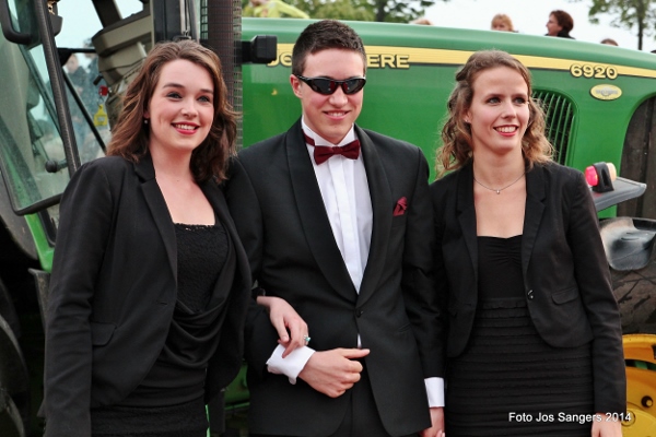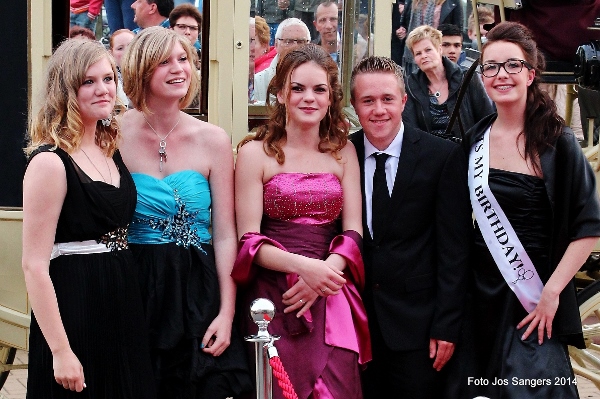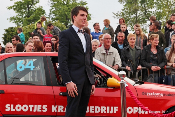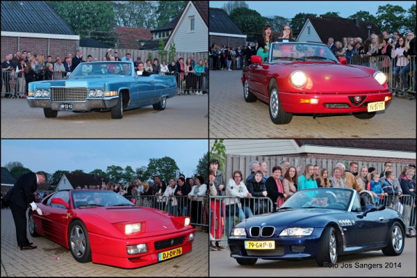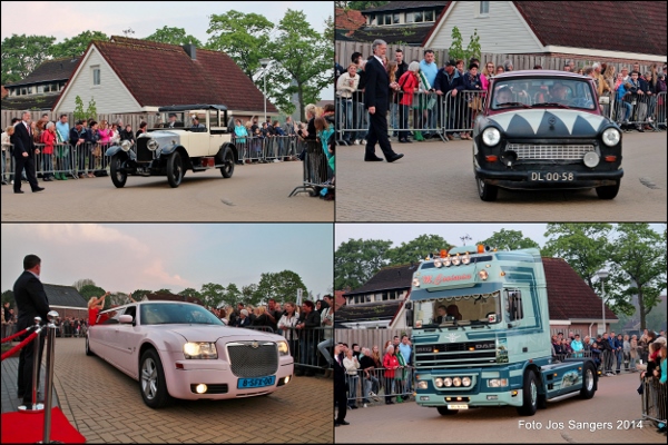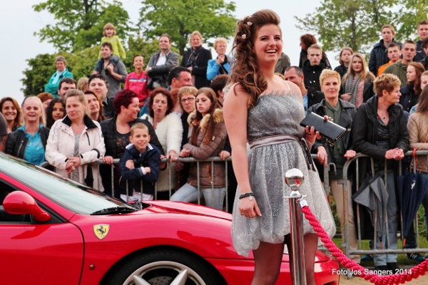 | Donderdagavond 24 april was het weer zo ver: het jaarlijks galafeest van eindexamenkandidaten op het Wellantcollege in Montfoort. Zo'n honderd leerlingen van het college, die uit Montfoort en wijde omgeving komen, doen na een vierjarige opleiding dit jaar eindexamen. Traditioneel is het voor deze kandidaten een grote uitdaging om zo mooi en sjiek mogelijk in stijl op het examenfeest te arriveren. Dat dit in de loop der jaren een waar kijkgenot is geworden, blijkt uit onderstaande afbeeldingen De redactie heeft helaas een keus moeten maken uit een groot aantal foto's. Er verschenen leerlingen in en op zeer uiteenlopende voertuigen, dit varieerde van een scootmobiel, traktoren, Ferrari's, verlengde limousines en zelfs een Lamborghini werd gesignaleerd. Mede door dat net op tijd het zonnetje weer was doorgebroken hebben enige honderden toeschouwers inclusief uw verslaggever volop van dit schouwspel genoten. |