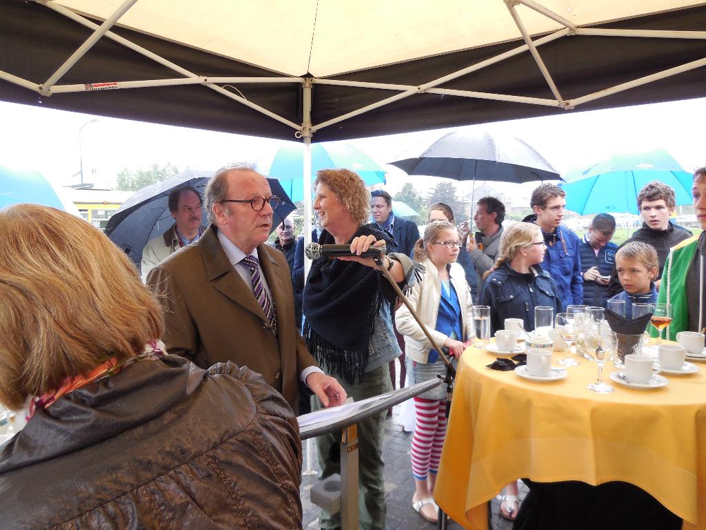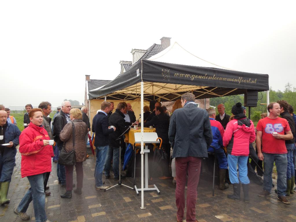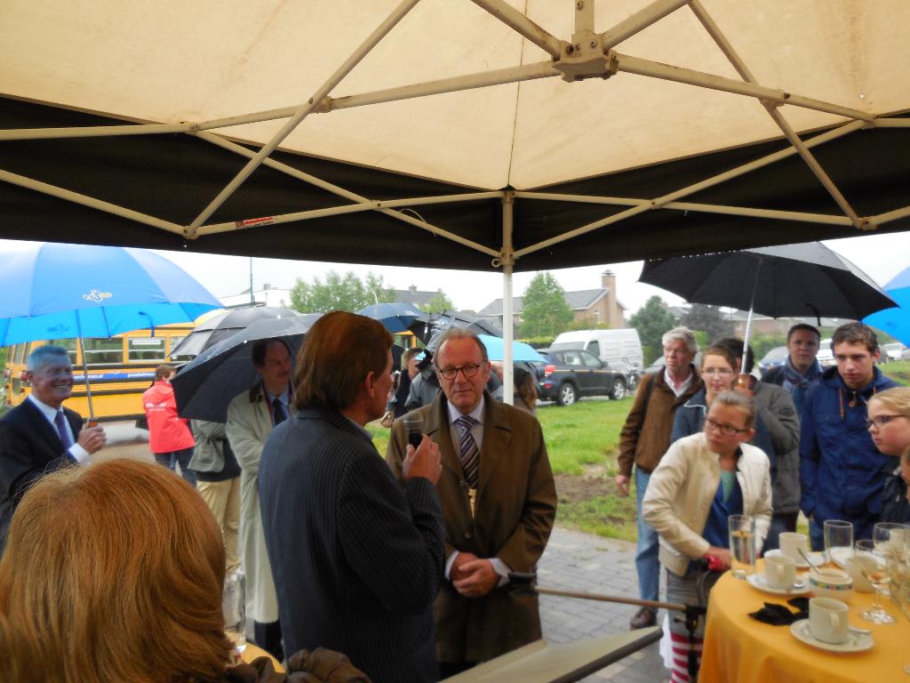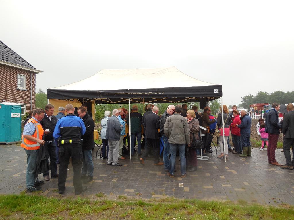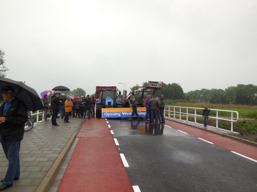 Geplaatst op:28-05-2014 Bijgewerkt op:28-05-2014 19:18 Wederiksingel officieel geopendBron: redactie RSM Aad van der VeenOp 28 mei werd onder grote belangstelling de nieuwe ontsluitingsweg van Montfoort, de Wederiksingel geopend. Deze belangstelling was vooral een protestactie van de agrariërs en bewoners van Blokland. Zij maken namelijk een groot bezwaar van het feit dat gelijktijdig met deze opening, zowel de Bovenkerkweg maar vooral de Benedenkerkweg wordt afgesloten voor gemotoriseerd verkeer d.m.v. een paaltje bij de Bleek. Over deze afsluiting was namelijk helemaal niet gecommuniceerd. Zij hadden daarom de Wederiksingel met veel tractoren en overige voertuigen gebarricadeerd. Om nu de opening toch ordentelijk te kunnen laten verlopen, ging burgemeester Jansen samen met de actievoerders de bus in, om tot een gesprek te komen. Hierbij was de pers niet aanwezig, vooral om de gemoederen tot bedaren te brengen. Ondertussen gaf wethouder Jonkers een korte verklaring. Hij deelde mee dat alles in overleg met de LTO was gebeurt en dat voor de agrariërs er de mogelijkheid is om bij langdurig en intensief gebruik van de Benedenkerkweg er één sleutel beschikbaar is op de paal te verwijderen. Hierna kwam burgemeester Jansen uit de bus met de mededeling dat het paaltje op de Bleek pas wordt geplaatst, nadat de bezwaarmakers een gesprek hebben gehad met wethouder Jonkers. Dit tot tevredenheid van de actievoerders, die daarop besloten in een protesttocht door de naastgelegen woonwijk terug naar huis te gaan. Hierna kon alsnog door de burgemeester de opening worden verricht met een welkom aan de aanwezigen. Hij sprak zijn waardering uit voor de realisatie van deze weg en vond het een aanwinst voor zowel de jongste woonwijk van Montfoort als de overgang naar het groene achterland, wat dienst als een recreatieplek voor veel jonge gezinnen in de wijk. Hij spreekt ook woorden van dank aan de firma Jos Scholman voor de bijzonder prettige samenwerking, waarop de heer Scholman in zijn dankwoord ook sprak over de trots van zijn bedrijf om deze nieuwe weg te hebben gerealiseerd. Hierna konden het college en overige belangstellenden in de bus, om op een symbolische wijze met de bus de Wederiksingel voor geopend te verklaren.