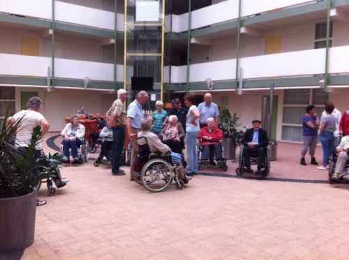 Geplaatst op:06-06-2014 Bijgewerkt op:06-06-2014 19:47 Antoniushof deed mee met de avondvierdaagseBron: Trudy BogaardsOok dit jaar werd in Montfoort weer een avondvierdaagse georganiseerd. Enkele jaren geleden heeft de organisatie van dit prachtige wandelfestijn een evenement aan het programma toegevoegd, namelijk "senioren wandelen." Senioren, en ook degenen die rolstoel-gebonden zijn en toch graag wilden mee wandelen, konden met begeleiding van een vrijwilliger deelnemen aan deze vierdaagse. Niet alleen de senioren die woonachtig zijn in Antoniushof, maar ook zij die buiten dit woon- zorgcentrum wonen waren van harte welkom. Iedere avond werd er 5 km gewandeld, waarna er met elkaar nog een kopje koffie werd gedronken. Met dank aan weer veel vrijwilligers!!