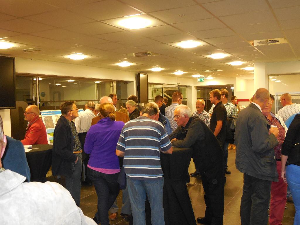 Geplaatst op:24-09-2014 Bijgewerkt op:24-09-2014 09:40 Inloopavond Kernrandzone-WestBron: redactie RSM Aad van der VeenOp dinsdag 23 september was in het stadskantoor een inloopavond over de kernrandzone-west. Wat is een kernrandzone? Dit is het landelijke gebied rondom Montfoort of Linschoten. Ze kunnen allemaal verschillende van karakter zijn en worden vaak gebruikt om gemeentelijke ontwikkelingen zoals woningbouw te realiseren. Maar ook andere recreatieve doeleinden zijn mogelijk. De navolgende ontwikkelingen spelen in de Kernrandzone-west, het gebied ten westen van de Bleek en ten zuiden van Willeskop. Dit leverde deze avond een grote toestroom van geïnteresseerden op, die graag kennis wilden nemen van de plannen. Deze plannen zijn in grote lijnen: De visie ligt in ieder geval tot 7 oktober ter inzage op het stadskantoor of is te vinden op de website van de gemeente. Op de gehele procedure is geen verder bezwaar of beroep mogelijk. |  Er viel nog heel wat te bespreken |