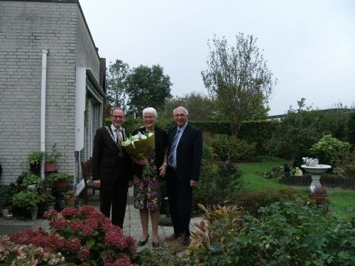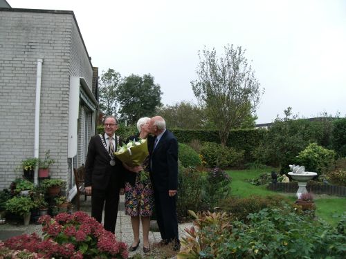 Geplaatst op:08-10-2014 Bijgewerkt op:08-10-2014 12:28 Gouden bruidspaar in LinschotenBron: Nettie Kuijer, redactie Radio Stad MontfoortWoensdag 8 oktober brachten burgemeester Jansen en de pers een bezoek aan Anneke en Henk Kaper – Knol, die die dag hun 50-jarig huwelijk vierden. Henk kan boeiend vertellen. Over hun kennismaking, hun reizen, hun steun aan mensen in ontwikkelingslanden. Het uurtje bezoek was dan ook veel te kort.. De vader van Anneke Knol verhuisde met 1955 met zijn gezin van uit het hoge noorden naar Dordrecht om daar een baan aan te nemen. Anneke voelde zich al snel thuis in het stadje, en haalde er in 1958 haar diploma van de middelbare school. Henk zat een paar klassen hoger op diezelfde middelbare school. Henk Kaper droomde er als jongen van om op zoek te gaan naar vreemde volkeren, veel van de wereld te zien. Hij studeerde aan de zeevaartschool en solliciteerde bij de Holland America Line. Echter, zijn vader was tegen en Henk nam een baan aan op de scheepswerf van de HAL. Zijn salaris liep langzaam op tot fl.350.- per maand. Vriend werd zwager Henk werd uitgenodigd door zijn vriend om eens gezellig langs te komen in zijn nieuwe huis. Anneke, de zus van die vriend was er die avond ook. En het jonge stel mocht elkaar direct. Ze kwamen in gesprek over de NJHC, Nederlandse JeugdHerberg Centrale. (nu Stayokay) De eerstvolgende NJHC reclameavond gingen Anneke en Henk mee. Daar sloeg de vonk echt over. Zoals dat in die jaren ging verloofden zij zich eerst. De baas van Henk bood het jonge stel een Henk bedrijfsflatje aan voor fl.180.- per maand. ”Veel te duur voor ons,” reageerde Henk. Gelukkig kreeg hij subsidie en werd het betaalbaar. Eigenlijk zou Anneke worden ontslagen op de dag van haar trouwen. Maar ze kon niet worden gemist op kantoor, en bleef, nu als parttimer werken. De jaren 1975/1976 waren dramatisch in de scheepsbouw. Henk ging aan het werk voor de Spaarbank protestant Nederland, volgde cursussen en ging op pad als verzekeringsagent. Het jonge stel moest hun bedrijfsflatje verlaten en op zoek naar andere woonruimte. Ze kwamen in 1977 in Linschoten terecht toen Henk een rayon werd aangeboden van De UBO verzekeringen. Anneke vond werk bij de inkoop van kruidenier Sperwer. Henk begon zijn eigen verzekeringskantoor. Eerst aan huis, later in de Dorpsstraat, en nu al 22 jaar aan de Jacob Barneveldlaan. Anneke deed het kantoor en Henk de buitendienst. Hun drie kinderen, een dochter en twee zoons, schonken hen 9 kleinkinderen. 10 jaar geleden nam hun jongste zoon het kantoor over. Reizen zit Anneke en Henk nog steeds in het bloed. Geëmotioneerd vertelde Henk over de dag dat hij in een restaurant in Peru zat en een klein Spaans kindje hem bedelend ‘t handje toestak en om wat eten vroeg. Vanaf die tijd zetten Henk en Anneke zich in voor o.a. de stichting ‘Geef hun hoop” http://geefhunhoop.com Hun gouden bruiloftsfeest vierde het stel in ruig herfstweer op de Nieuwkoopse plassen. Op de PAX rondvaartboot, een klassieke salonboot uit 1917. Toch de zeeman in Henk?